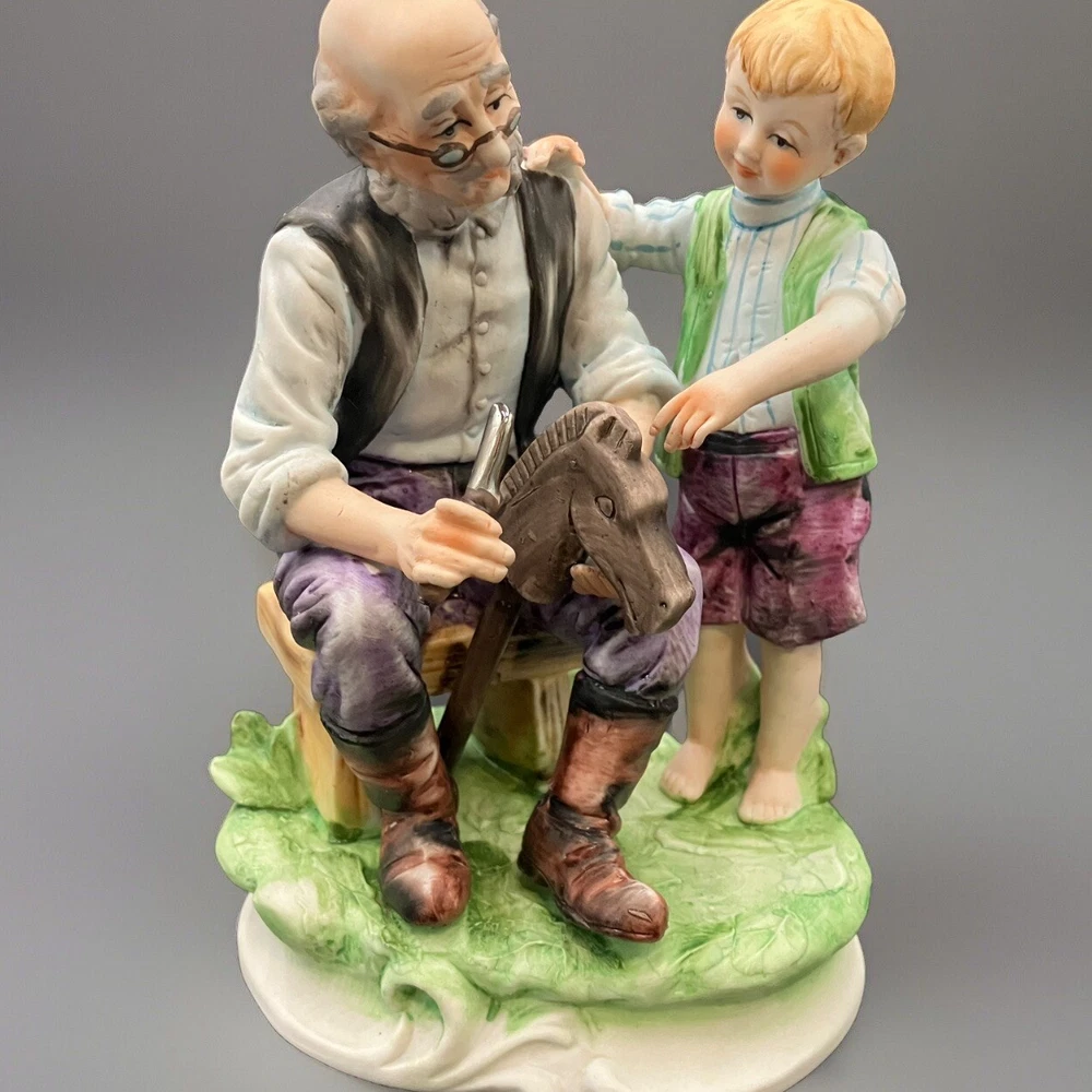 This vintage Lefton figurine depicts agrandpa, boy, and family theme. The hand-painted porcelain figurine stands at 6.5 inches tall and 4.5 inches wide. The figurine is made in Japan and has a matte finish. The figurine is perfect for all occasions and is a great addition to any collection. It features whittling and woodworking subjects, along with traditional style and multicolor. The item comes with one figurine, and the brand is Lefton. This collectible is ideal for those who enjoy family, people, and love themes. CONDITION: Pre-owned in excellent condition. No chips, cracks, damage. ****SHIPS NEXT BUSINESS DAY****