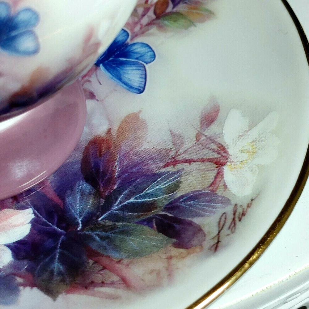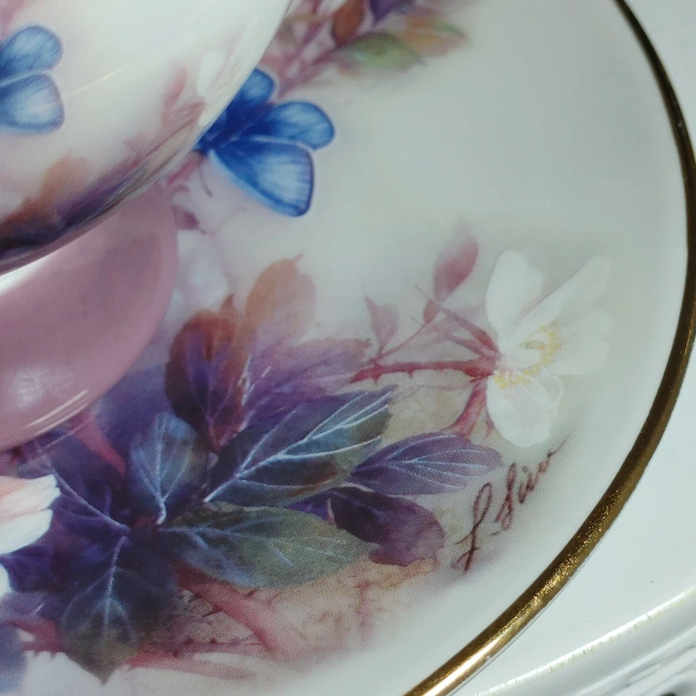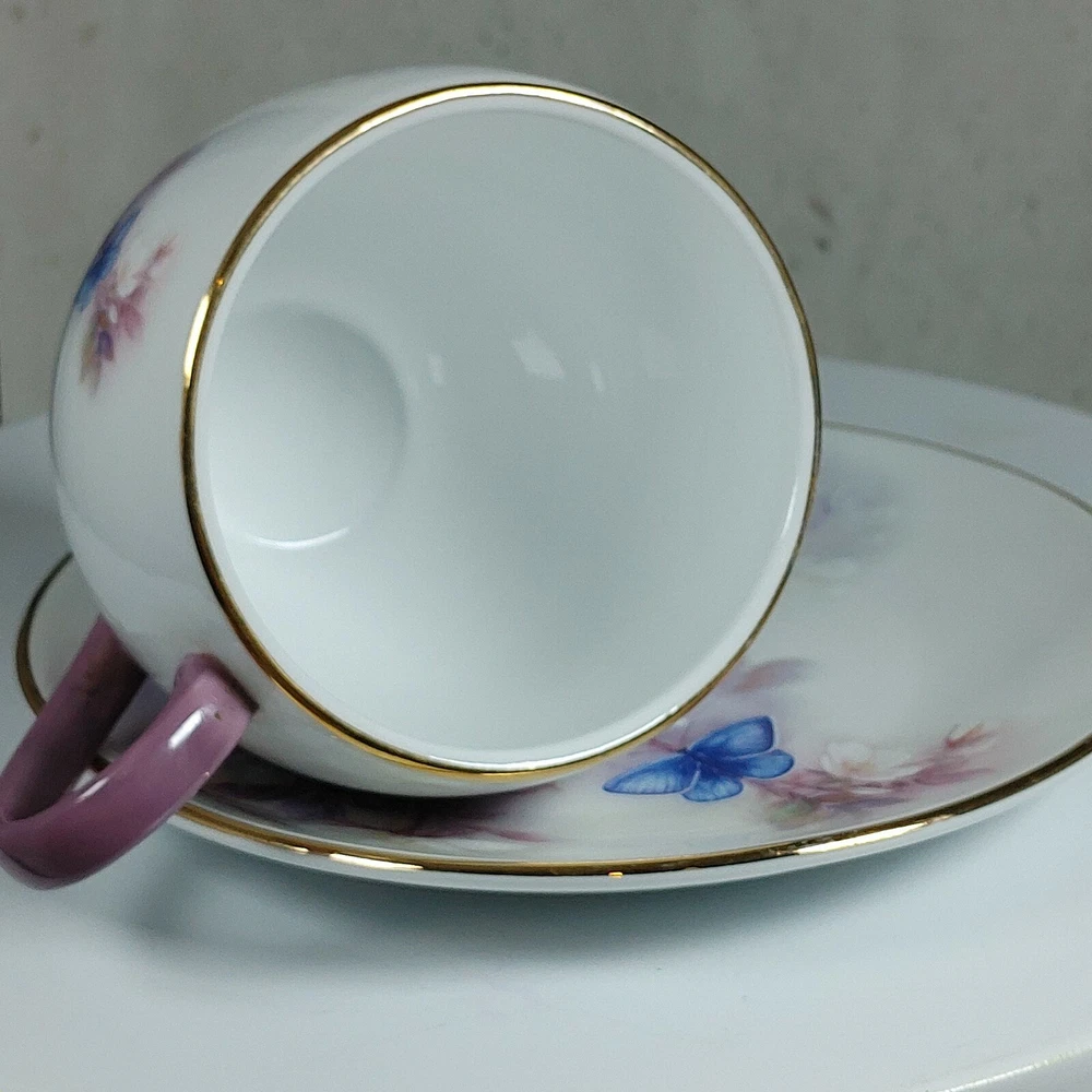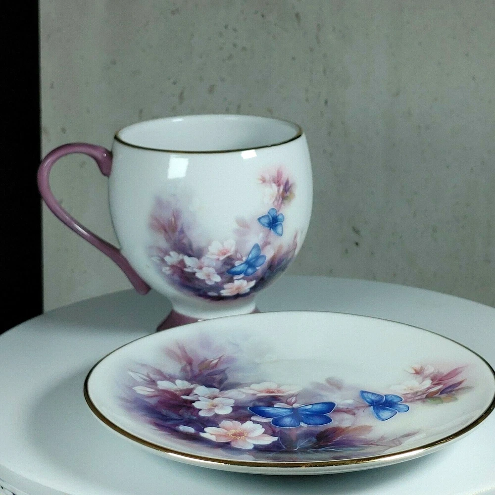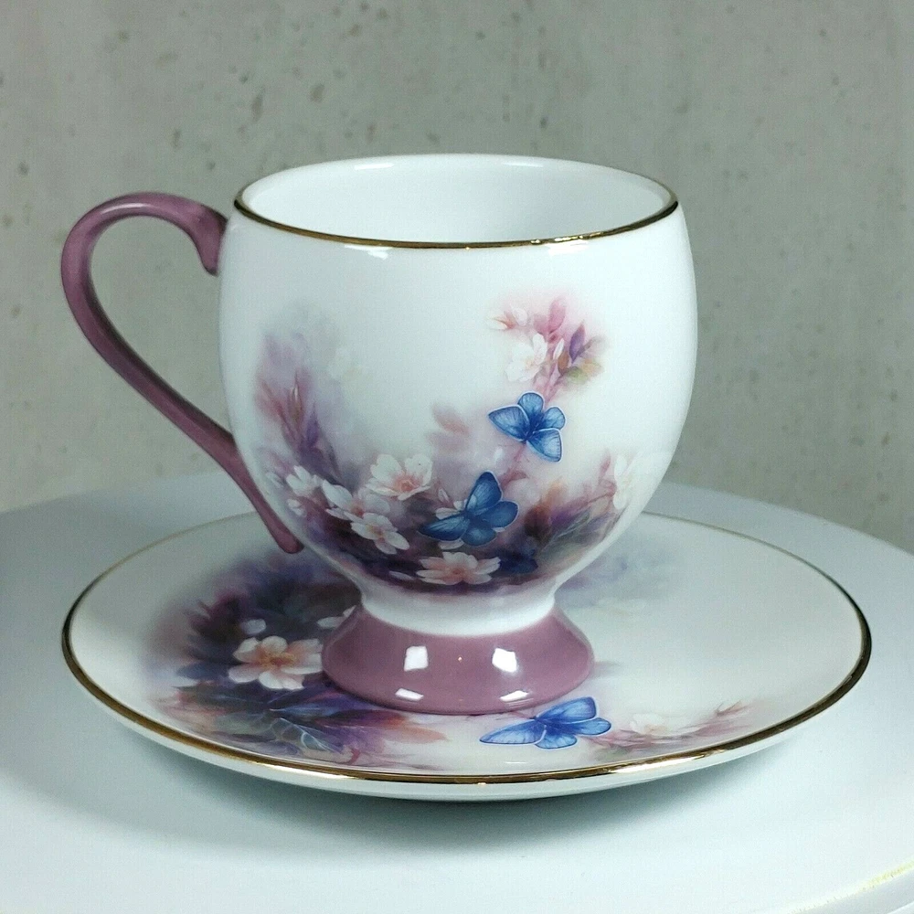 Enjoy your morning coffee in style with this vintage Lena Liu coffee cup and plate set. The set features a beautiful floral pattern of blossoms and butterflies in a lovely shade of mauve, making it perfect for all occasions. Made of high-quality porcelain, this set includes an 8 fl oz cup and matching saucer, both decorated with the stunning floral design. This set is perfect for collectors and anyone who appreciates the beauty of floral art. With its delicate details and charming theme, it makes a great addition to any home or as a thoughtful gift for a loved one. Don't miss the chance to add this unique and elegant set to your collection! Happy Holidays! *USA buyers save with currency exchange on purchase.We ship UPS, Canada Post and Fedex as postage requires. Thank you for being a valued customer!