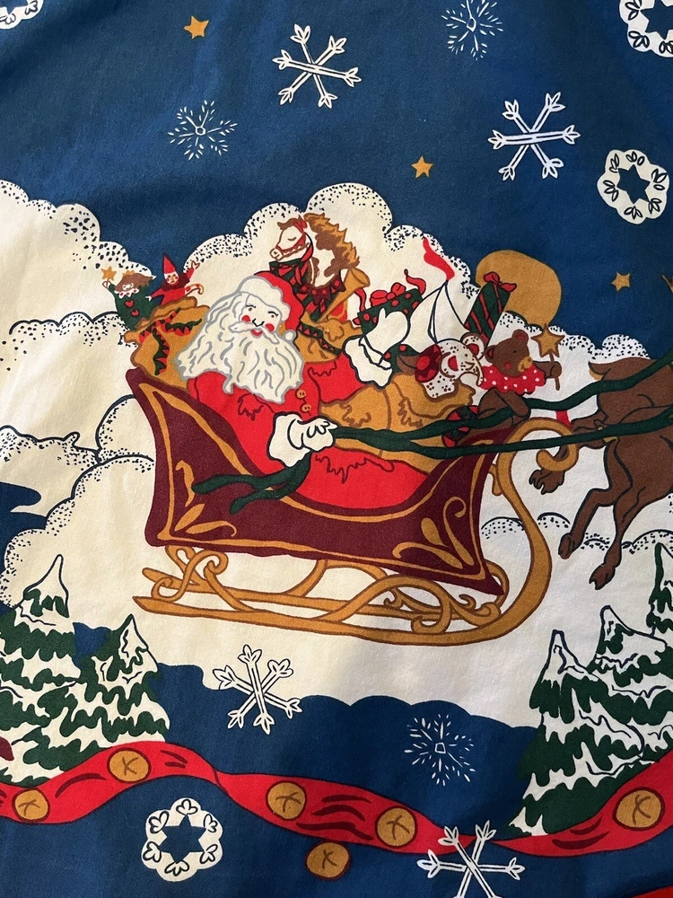 Add a festive touch to your Christmas decor with this vintage Lillian Vernon Christmas tree skirt. Featuring a beautiful vibrant design of Santa's reindeer, this 45" skirt is perfect for creating a personalized and unique look for your holiday celebration. Made with high-quality materials and attention to detail, this collectible piece is sure to become a treasured addition to your holiday decorations. Whether you're a collector or just looking for a special touch for your home, this Christmas tree skirt is a must-have.