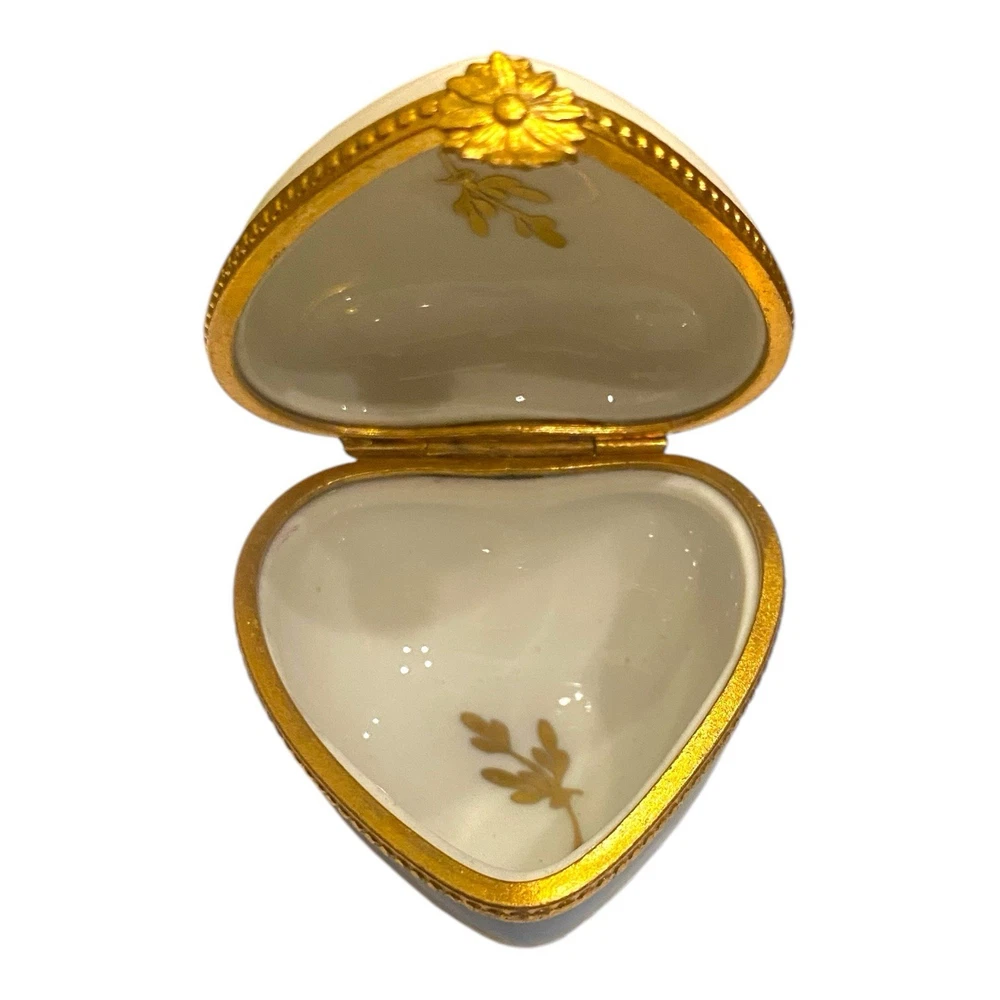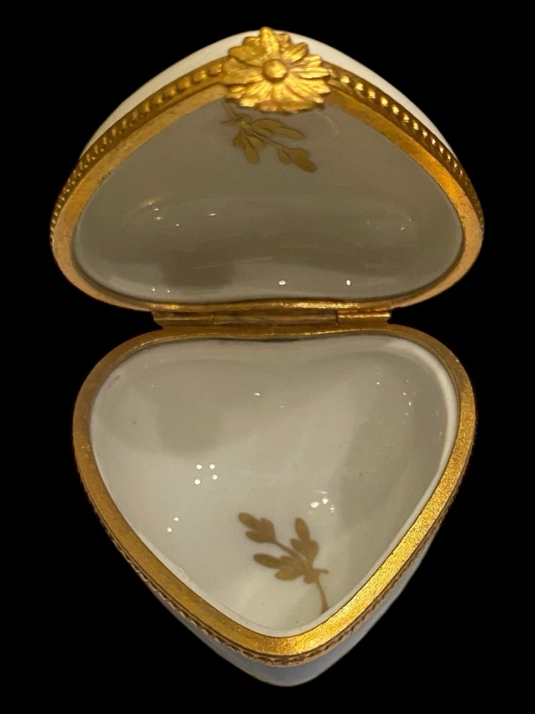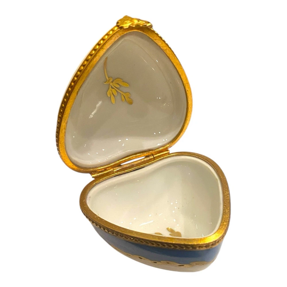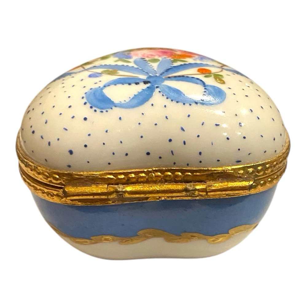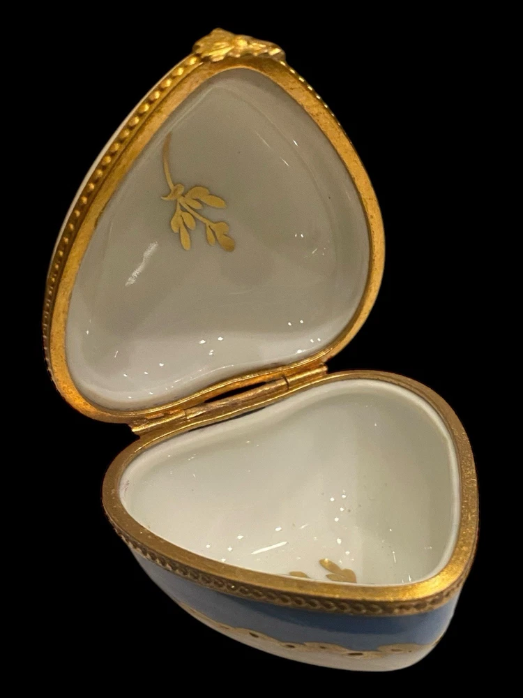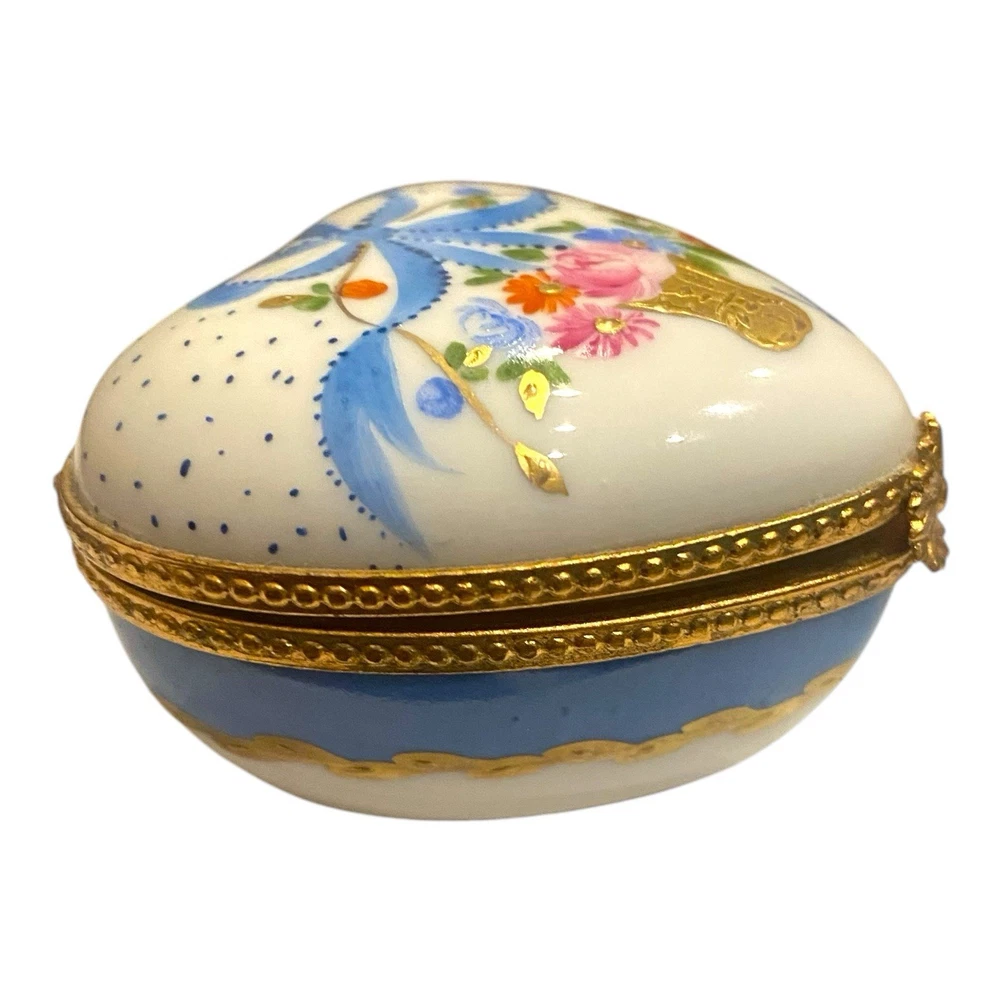 Vintage Limoges France Porcelain HEART SHAPED Trinket Box with Flower Basket and Large Blue Ribbon This beautiful Limoges porcelain trinket box is the perfect addition to any collection. With a heart shape and a floral pattern, it is a great gift for any occasion. The multicolor design and blue ribbon make it a charming and unique piece. It is small in size, measuring 2.5 inches in length, has a metal gold trim and snap gold flower shaped closure. This keepsake box is an original French piece and is perfect for any room. This trinket box makes a great Christmas, Mother's Day, birthday, or Valentine's Day gift for that special someone. Signed on back “Limoges France - Porcelaine de coree a la main - Paris Style” It’s in excellent vintage condition without chips, cracks or other damage and measures 2-1/2” long x 2” wide. Please see all the photos for all the details as they are a large part of our description. STORE POLICY: Condition is “New Old Stock” without retail box. Trinket box is 100 percent authentic and made in France. Sold as is, as found and as pictured. We aim to provide accurate and honest descriptions. All photos are an accurate representation of the item(s) you would be purchasing. Please zoom into the photos closely and judge the size, condition and content for yourself as our photos are a large part of our description. Please read descriptions carefully as we try to describe everything in as much detail as possible. Any concerns about the item’s condition, please address these concerns before purchasing. Most orders ship within 3-5 business days (Business days Mon-Fri) with USPS GROUND ADVANTAGE. *Expedited Shipping Option available at Checkout. Due to export limitations and restrictions, items listed in the Health & Beauty category CANNOT be shipped with eBay International Shipping. *Please check items included in eBay's hazardous, restricted or regulated materials policy. To ensure a positive shopping experience for all of our customers, returns ARE accepted. Items can be returned in their original condition for a full refund within 30 days of receipt; however, if an item is damaged or defaced by the customer, or if a new item is returned opened, used or without the tag(s) attached, the refund amount will be reduced by up to 50% as allowed by eBay. By purchasing this item(s), you are agreeing to this store policy. All returns must go through eBay Returns Center. If for any reason you no longer want to keep your item(s), please open a return request through eBay - We will provide a return label free of charge. We abide by eBay's rules and regulations for returns, if they are met, you will be refunded. If you have any further questions about the return policy, please contact an eBay customer service agent. If there is an issue with your purchase, PLEASE do not leave negative feedback before you have contacted us to resolve any issues. If you have any questions or concerns, please contact us directly by selecting the 'CONTACT SELLER' option. We will work with you quickly to resolve any questions or concerns. If any of our national network of stores identify unreasonable, problematic transactions, we reserve the right to block any buyer from future purchases at our discretion. Buy with confidence and rest assured that you are dealing with an experienced store whose #1 priority is customer satisfaction. We list new items continuously, so add us to your favorites list and check back often as you never know what you'll find here. Look around in our store as we have a huge selection of fragrances, skincare, makeup and other beauty products as well as vintage and hard to find items. THANK YOU for shopping with us! We want you to be happy with your purchase! PLEASE don't forget to leave positive feedback and give 5 stars in Seller's Rating. The information provided here is strictly to be used for informational purposes only. We do not represent or warrant the product details, ingredients, nutritional value, or any other product information to be accurate or complete. Manufacturers improve or change their product formulas, update labels, and change their packaging. It is recommended that you do not solely rely on the information described in this listing. For any specific product information or concerns, it is recommended that you contact the manufacturer directly. If there are healthcare concerns or questions, please contact your licensed healthcare professional for advice. Attention VeRO members: We are not affiliated or endorsed by the companies mentioned in this listing. All trademarks and copyrights are acknowledged, they are only used for informative description of the items offered for sale. All items are authentic as evidenced in our photos, legally acquired and owned, and hence; covered under First Sale Doctrine. Unlawful VeRO removal of this listing WILL constitute perjury and result in legal action.