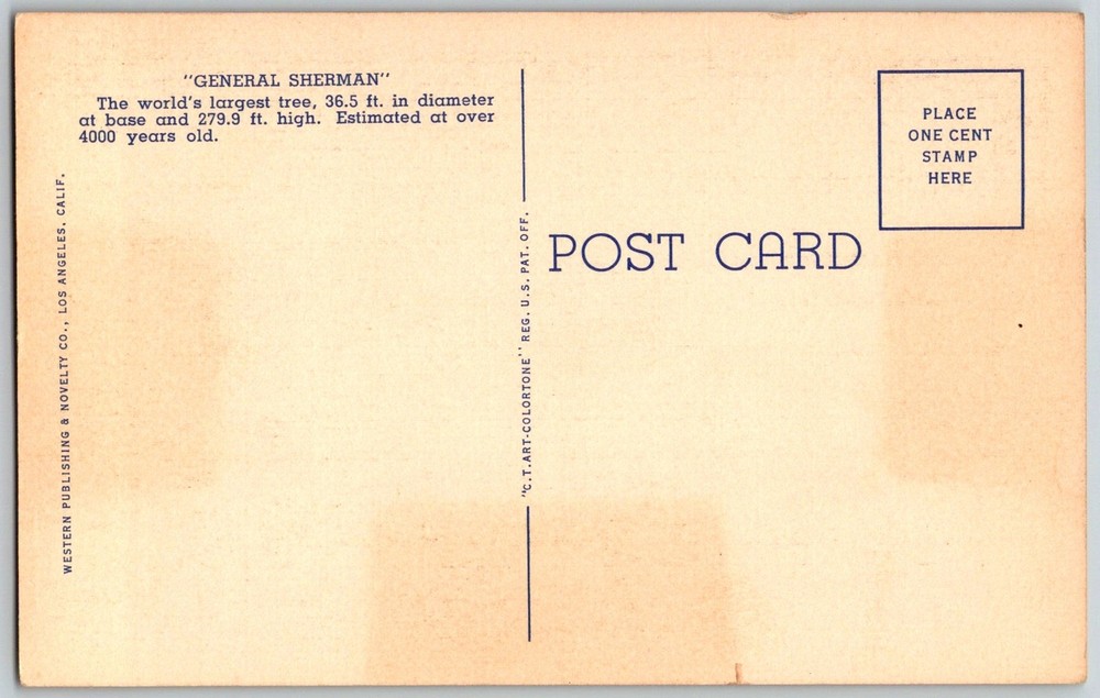 Vtg Linen Postcard General Sherman Sequoia National Park, CA 1930s Own a piece of history with this linen postcard! This unique item captures a moment in time with stunning detail. Our collectible linen postcards come in various conditions, ranging from excellent to fair, and are perfect for collectors, historians, or vintage enthusiasts. Each postcard is stored in a protective sleeve and shipped in a rigid envelope for safe delivery. Returns are accepted and combined shipping is available upon request, making it easy to add this timeless piece to your collection. Explore our eBay store for more vintage postcards, photographs, and unique finds. Discover treasures that tell a story! Thank you for supporting our mission to preserve history through vintage collectibles. See High-Resolution Scan For Details. Message Me With Any Questions.