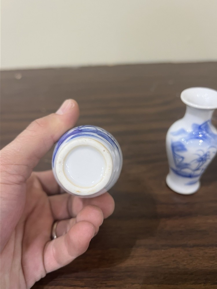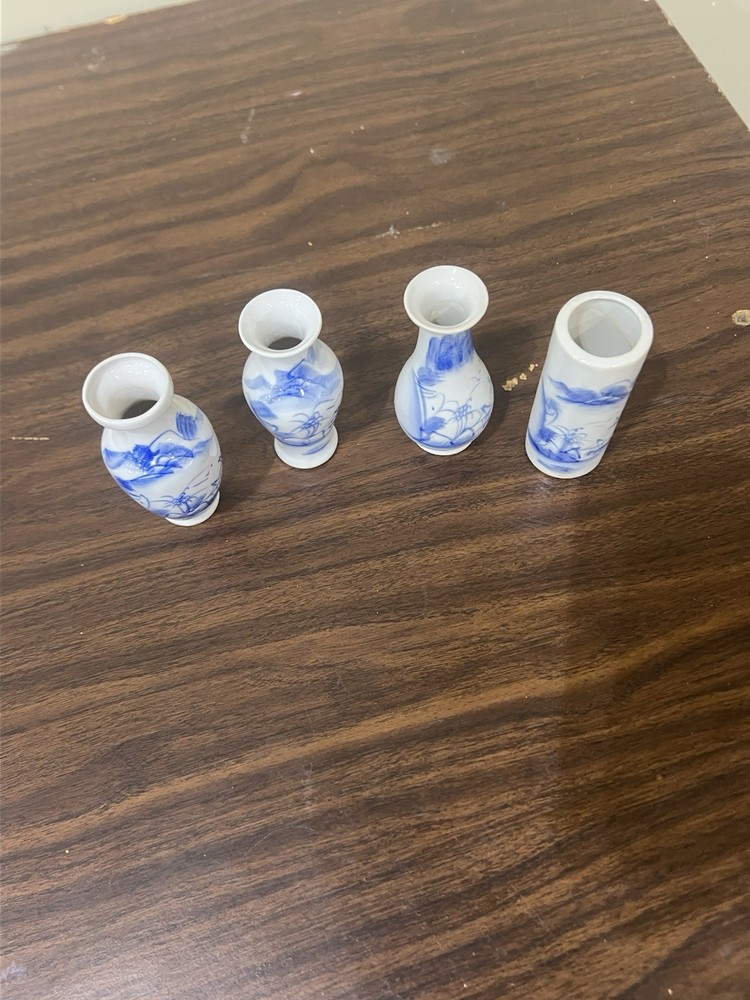 Vtg Lot of 4 Classic Mini Miniature Chinese Blue and White Ceramic Tabletop VASE. Condition is Used. Shipped with USPS Ground Advantage.