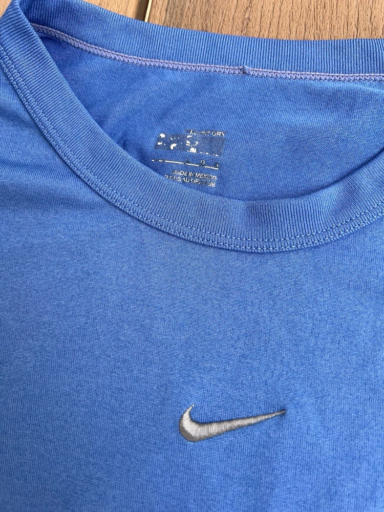 Elevate your workout wardrobe with this vintage Nike Fit Dry Tank Top. Designed for men in a size L, this blue tank top features a classic crew neck and is sleeveless, making it perfect for a wide range of activities including running, gym training, and basketball. The breathable and lightweight fabric ensures you stay comfortable during intense workouts, while the mesh fabric type offers added ventilation. This Nike Dri-FIT tank top is perfect for all seasons, and its solid blue color complements any sporty look. The top is collarless, and its pullover closure ensures easy wear. Ideal for travel, activewear, and casual wear, this tank top is a great addition to any Nike collection.