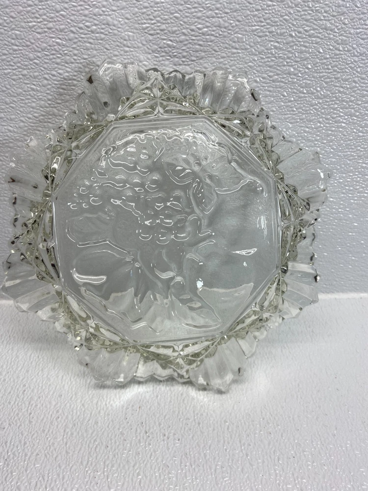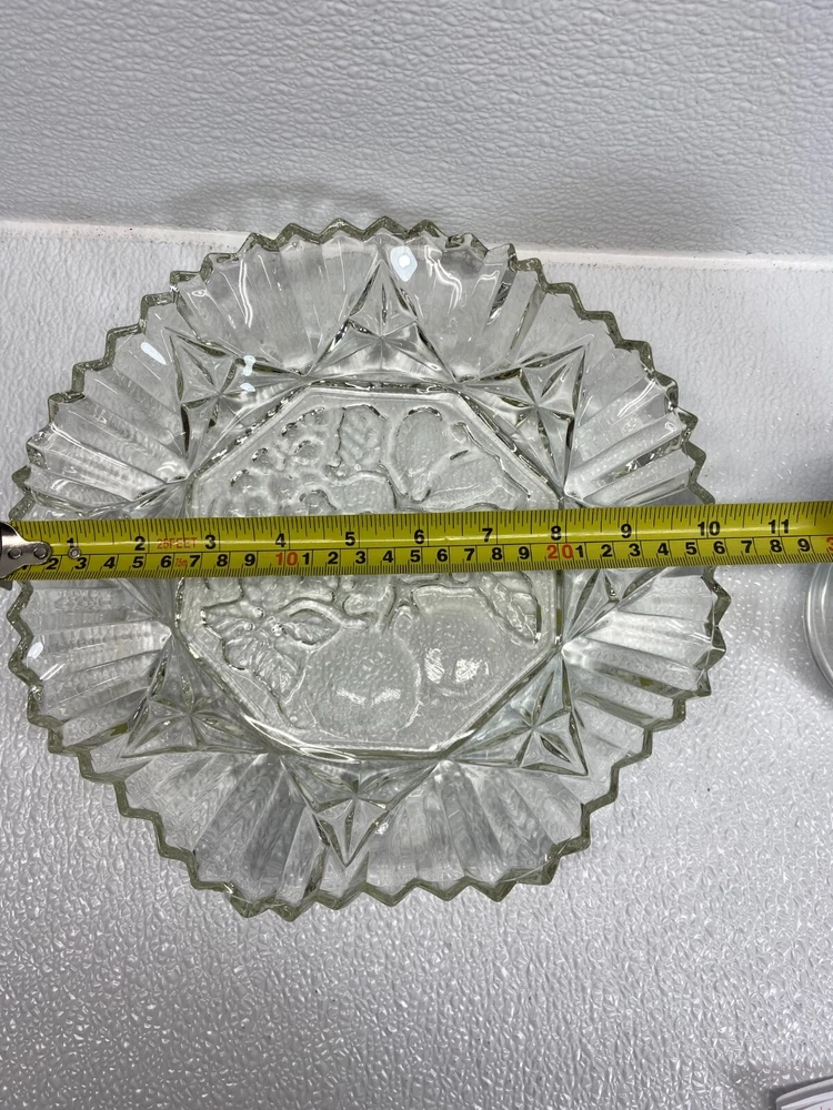 Vintage Clear Glass Pioner Fruit Pattern 10 Inch Bowl/Platter in very good condition.No scratches,no cracks,no ships WE OFFER COMBINED SHIPPING AND MULTI-ITEM PURCHASE DISCOUNTS. IF YOU HAVE ANY QUESTIONS, PLEASE LET US KNOW