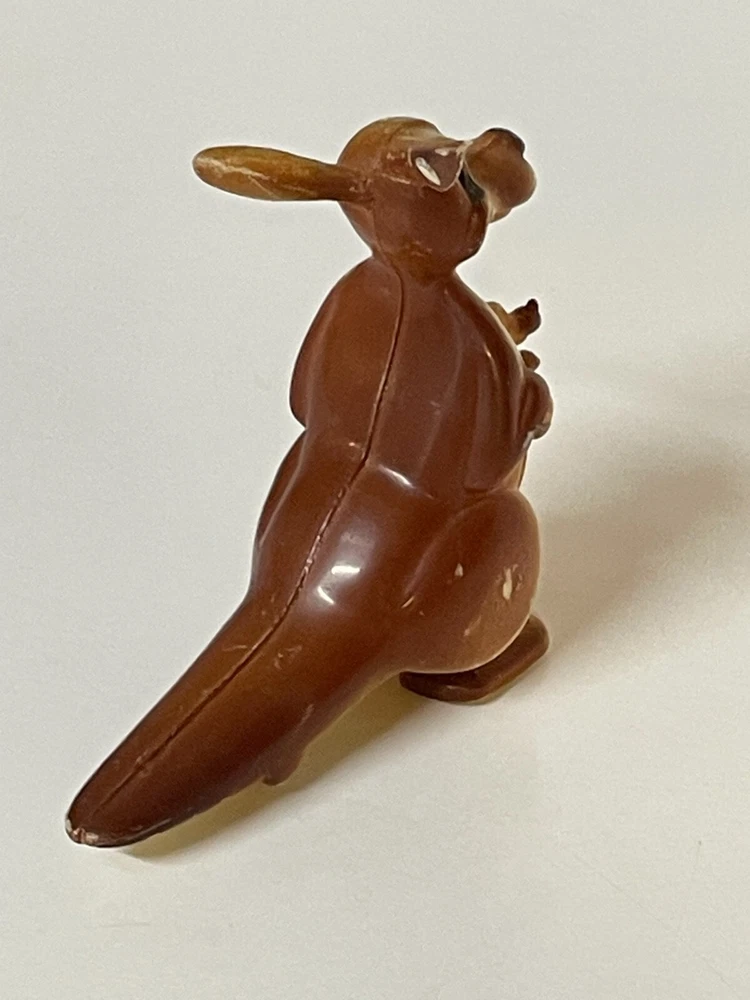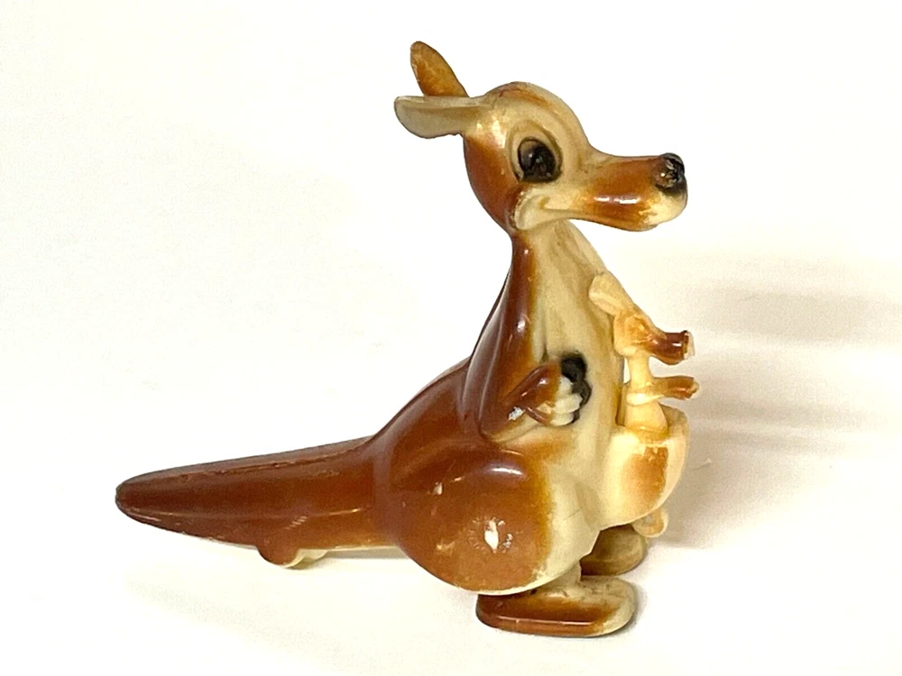 This listing is for a Vintage Plastic Ramp TOY Walker Walking Kangaroo with a baby kangaroo. Approximately 3" high and 3" long. A little paint loss on end of tail and ear. Marked Hong Kong on side of leg. Please look at the photos closely as photos are an important part of the item description. The Plastic Ramp TOY Walker Walking Kangaroo with a baby kangaroo. is being sold as is and there is no return. Please see our other listings for other vintage items . We are happy to combine shipping unless items are to fragile or to bulky/heavy. Let us know if you are bidding on multiple items. If you have any questions please ask for additional information. Customer satisfaction is our priority. Happy Shopping and have a great day! And please leave feedback. We are a charity and items are used (vintage and antique) from donations, and as such generally show some signs of age related use and wear. Items are inspected closely and unusual wear and condition will be noted.. we sell items as is and clean, dust, but do not polish. We utilize recycled shipping/packing material and will ship either USPS, FedEx or UPS and will ship the least expensive method. . We ship within 3 business days of payment.