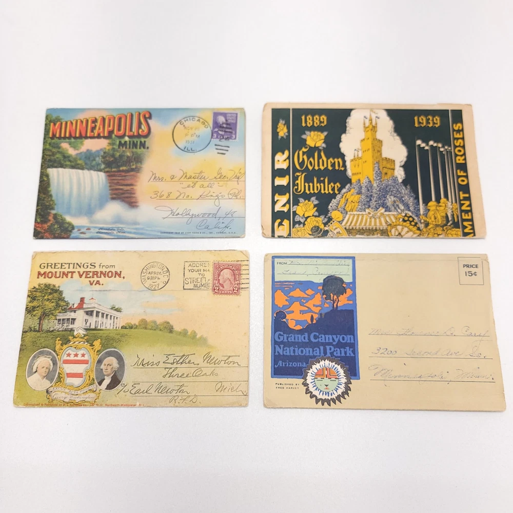 Vtg Post Card Lot 4 Greetings From Pasadena Minneapolis Grand Canyon Mt. Vernon All Items are Packaged with care and shipped within one business day or sooner. Thanks for stopping by!