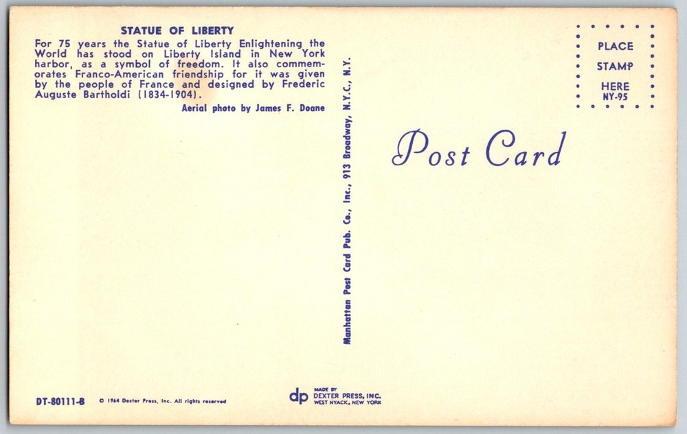 Vtg Postcard Statue Of Liberty Aerial New York, NY 1960s Own a piece of history with this postcard! This unique item captures a moment in time with stunning detail. Our collectible postcards come in various conditions, ranging from excellent to fair, and are perfect for collectors, historians, or vintage enthusiasts. Each postcard is stored in a protective sleeve and shipped in a rigid envelope for safe delivery. Returns are accepted and combined shipping is available upon request, making it easy to add this timeless piece to your collection. Explore our eBay store for more vintage postcards, photographs, and unique finds. Discover treasures that tell a story! Thank you for supporting our mission to preserve history through vintage collectibles. See High-Resolution Scan For Details. Message Me With Any Questions.