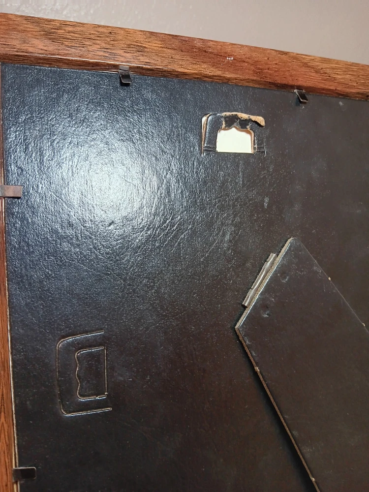 DAMAGE: The hanging mechanism on the back is worn for hanging vertical. Can also be placed on tabletop or hung horizontally! Approx Dimensions: Height: 10.5" Width: 9.5" Thickness: 1"
