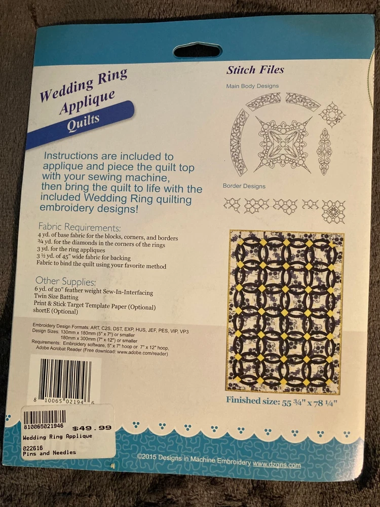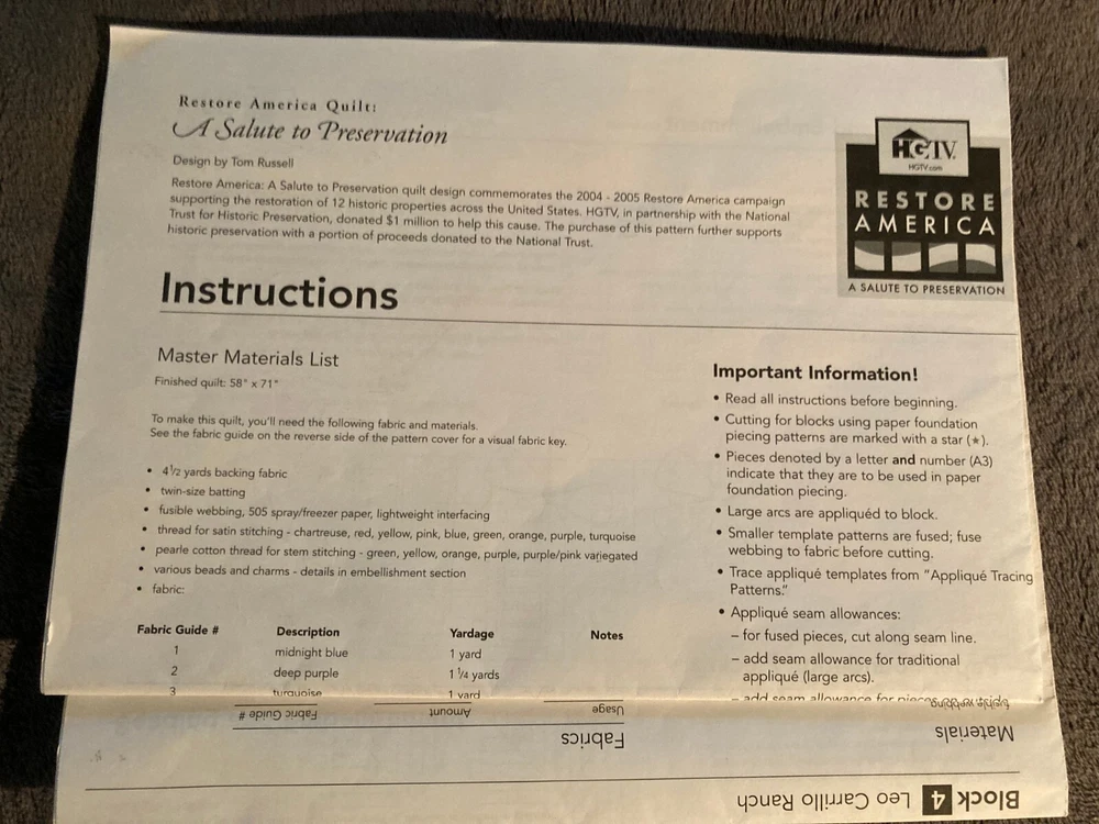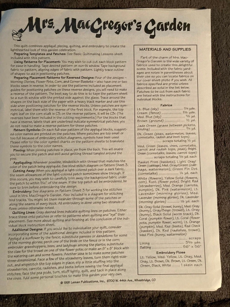Add a touch of elegance to your home decor with these beautiful quilt patterns, kits, appliques, holiday placemats, and more! Choose from a variety of options to create your own unique and stunning quilt projects. With patterns from popular brands such as Quilt Company, Quilters Treasures, House of White Birches, Dime, HGTV, and Leman, you'll have a wide range of options to choose from. These patterns are perfect for creating beautiful quilts, Placemats. Table Runners and more. All are photos I took of the actual item. I took pictures of any marks on each. Some of the publications may be 30 years old or more and some may be my own; some new, some used. Details: Black Orchid Kit - Quilter's Treasures - 2004 - NEW - Uncut Quilt Block or Wall Hanging kit; complete. Finished Size 11" x 17" Based on Donna Schultz's original designs for stained glass Easy Striped Table Runner Pattern TQC 272 - The Quilt Company - 2008 - Uncut Approximately 16" x 45" Name written on back; otherwise undamaged. Quick Holiday Placemats - House of White Birches 141059 - Uncut Name written in corner; other than that perfect. 10 designs to create Wedding Ring Applique Quilts - Dime Designs in Machine Embroidery - NEW -Unused With the Wedding Ring Applique Collection you'll learn how to: Piece the quilt top Make a quilt sandwich Embroider the quilt designs Wedding Ring Applique includes: 5 designs to embellish the quilt borders 5 designs to embellish the Wedding Ring blocks Instructions to applique and piece the quilt top with your sewing machine Once you try Eileen Roche's techniques for preparing and sewing curved fabric–you're options for creativity will expand. Top off the quilt with embroidery designs sized to fit the pieced quilt. Voila! You have made an heirloom-quality quilt! Embroidery Formats: ART, C2S, DST, EXP, HUS, JEF, PES, VIP, VP3 Design Sizes: 130mm x 180mm (5” x 7”) or smaller 180mm x 300 mm (7” x 12”) or smaller Requirements: Embroidery software, 5” x 7” hoop or 7” x 12” hoop Adobe Acrobat Reader (Free download: www.adobe.com/reader ) Hand Applique with Alex Anderson - Simple Quilts HGTV - 2001 - NEW Seven Quilt projects for hand appliqué Mrs. McGregor's Garden Quilt Pattern and Templates - Leman - 1991 - New Uncut Treetop Serenade quilt Pattern & Templates - Leman - 1990 - New Uncut Templates and patterns for all birds shown Restore America Quilts: A Salute to Preservation Templates and complete instructions - NEW Uncut 2.99 58" x11" Quilt created depicting 12 historic properties Frankie's Fabric Photo Printing "Baby Memory Quilt" - RARE Promotional Pattern Everything you need is in this package. Multi formatted CD included with baby embroidery designs. Print your favorite photo on fabric. Please read pictures carefully for more information Appliquick Appliques for easy quilt making. Rose Wreath Quilt Pattern Adaptable to Crib, Dbl, Queen, & King Sizes. Instructions and patterns included Please ask any questions before you buy. Pay $4.50 shipping for first item, then any others ship free. I will be adding items on a regular basis.