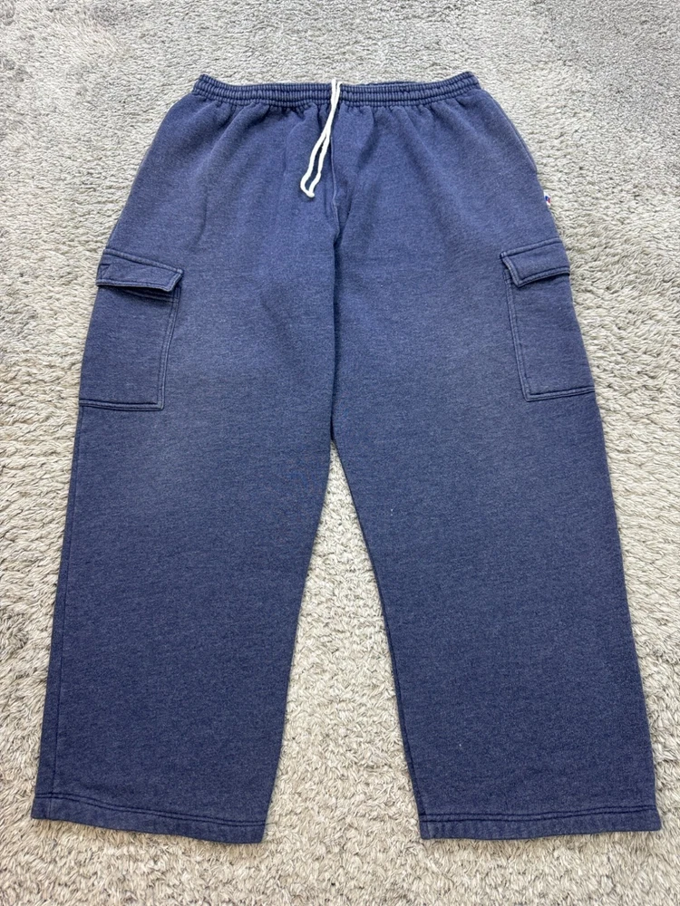 Vtg Russell Athletic Sweatpants Mens XL Gray Cargo Relaxed Baggy Lounge 90s Y2K