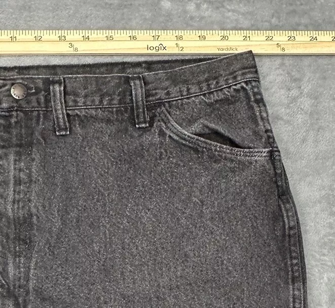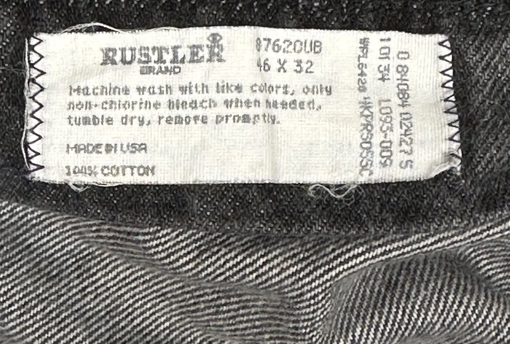 Vtg Rustler Jeans Mens 46x32 (Fit 42x27.5 Hemmed} Faded Black Straight USA READ One small hole in each bottom portion of pant leg and faded but otherwise in good pre-owned condition and laundered. Please see measurements in photos. I ship next business day, but sometimes same business day and Saturday if order is paid for early enough. Please let me know if you have any questions. I am open to offers!! Feel free to look at other items in my store! Thanks!