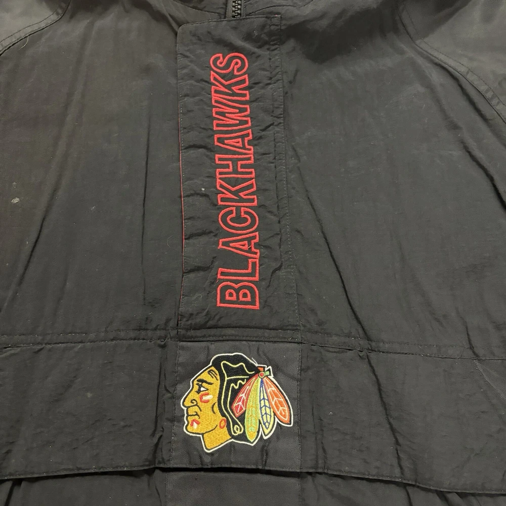 Vtg STARTER Chicago Blackhawks Half Zip Pullover Puffer Jacket 90s Large NHL