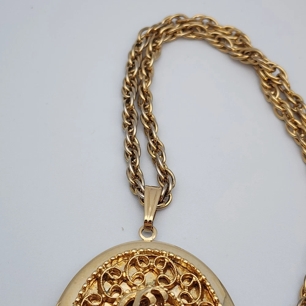 Vtg Victorian Style Sarah Coventry Filigree Chain Locket Pendant Necklace Large Locket Is In Great Shape (Tidbits Of Photos Left). Chain Shows Signs Of Wear. See Pics For Details.