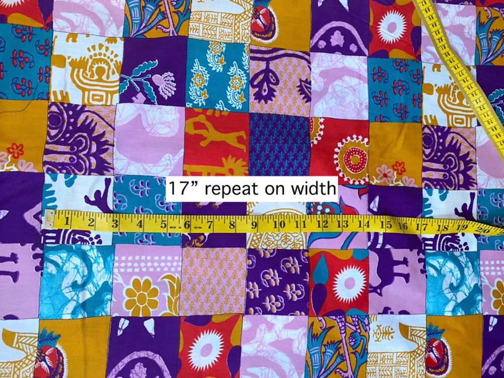 80s vintage Schwartz Liebman fabric quality, soft, cotton cloth: 44" wide by 4.05 yards long "Cheater Quilt" style with bright colors and primitive ethnic designs un-washed .. un-cut clean and fresh no smoking no cats fast shipping