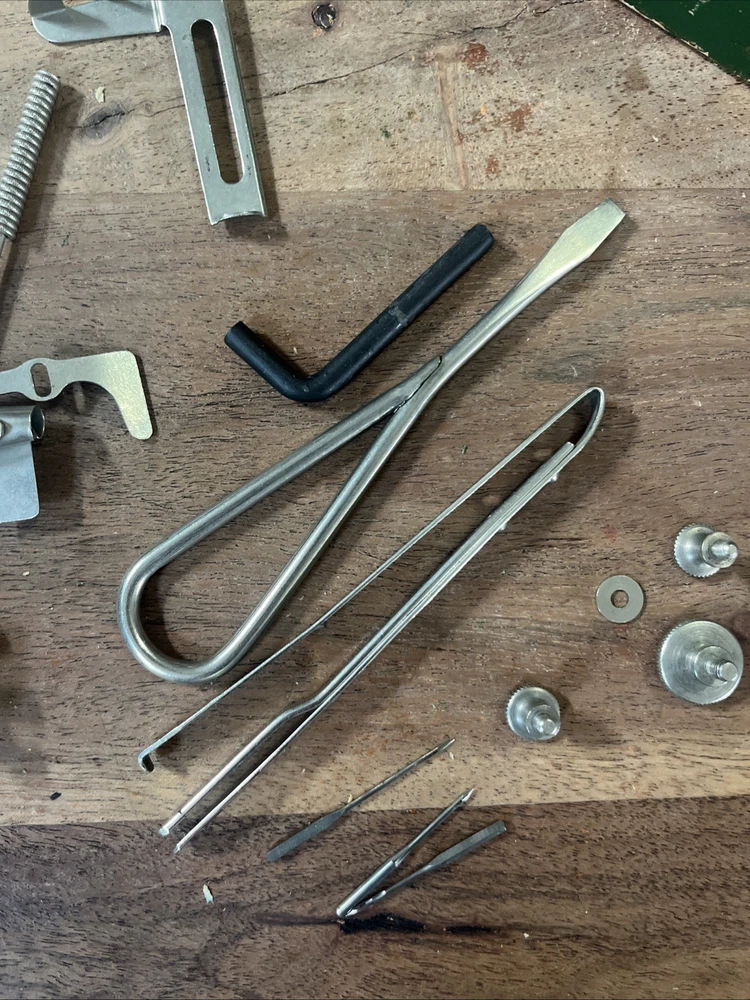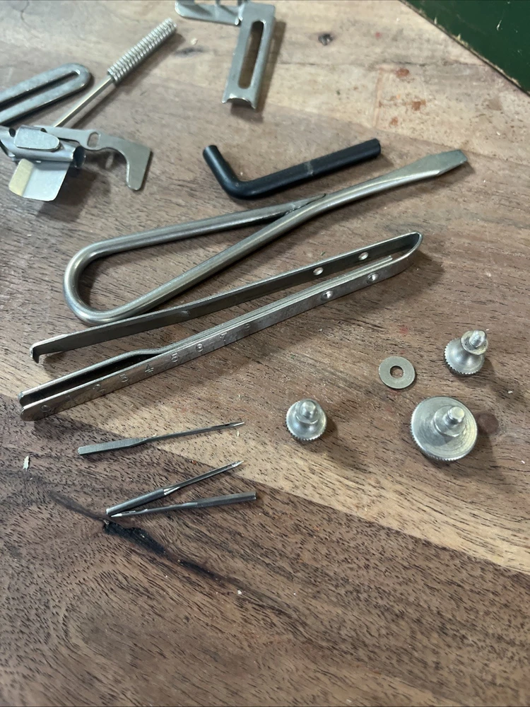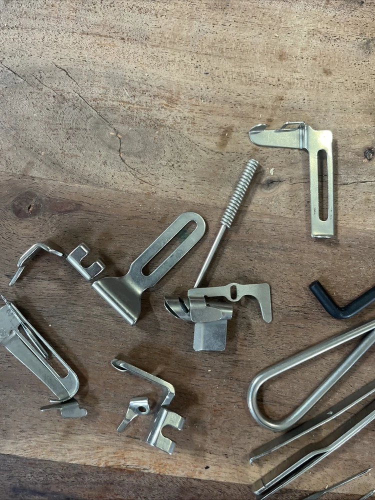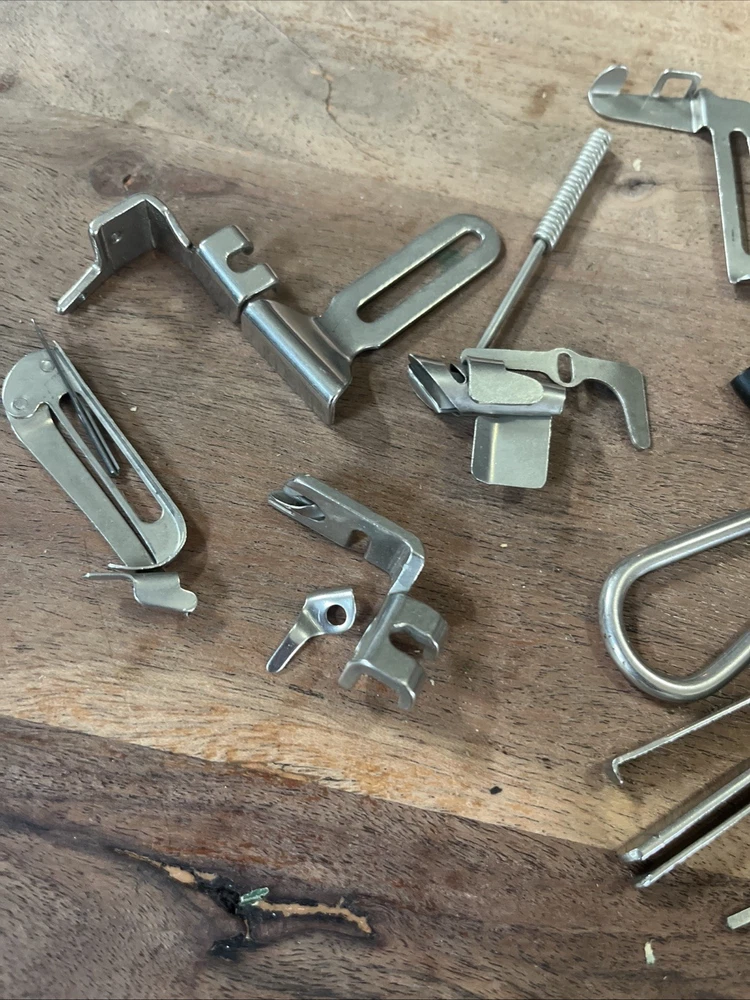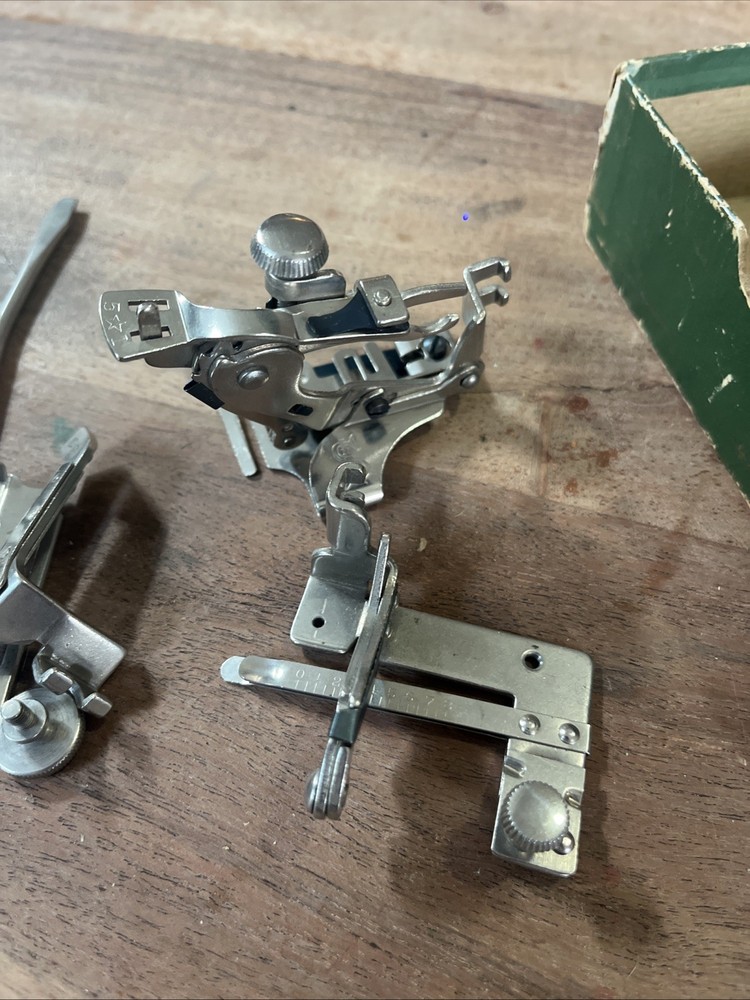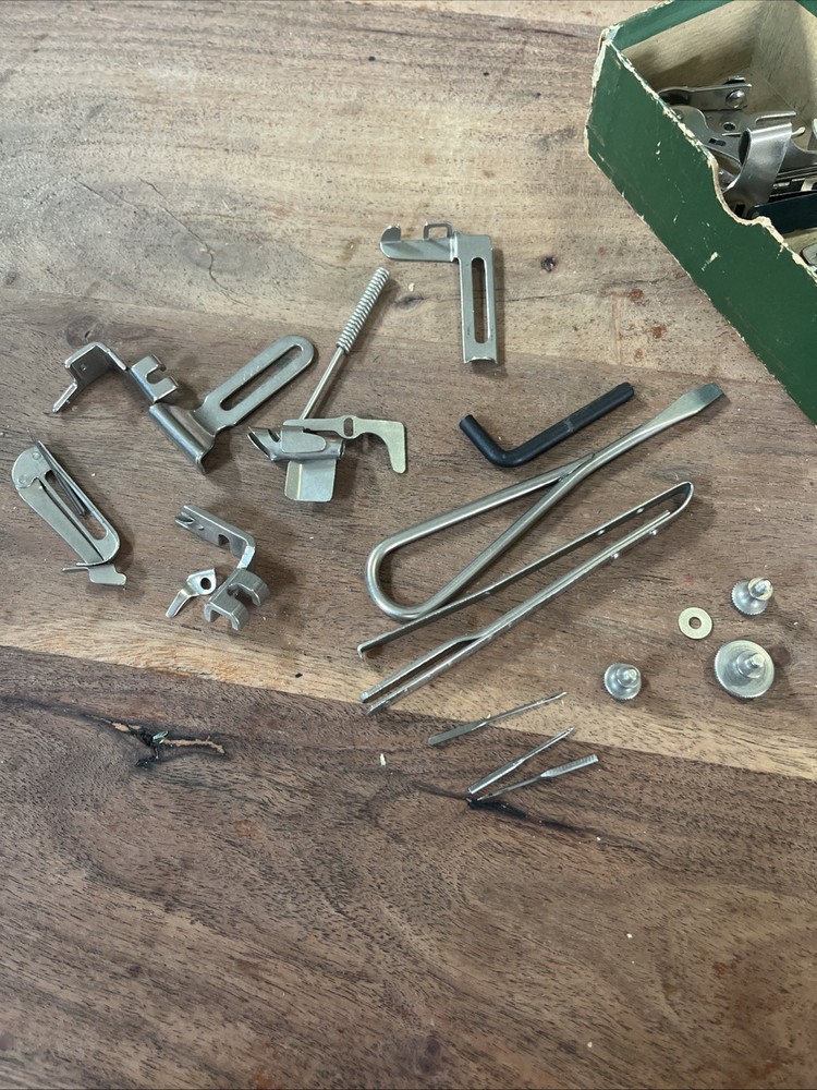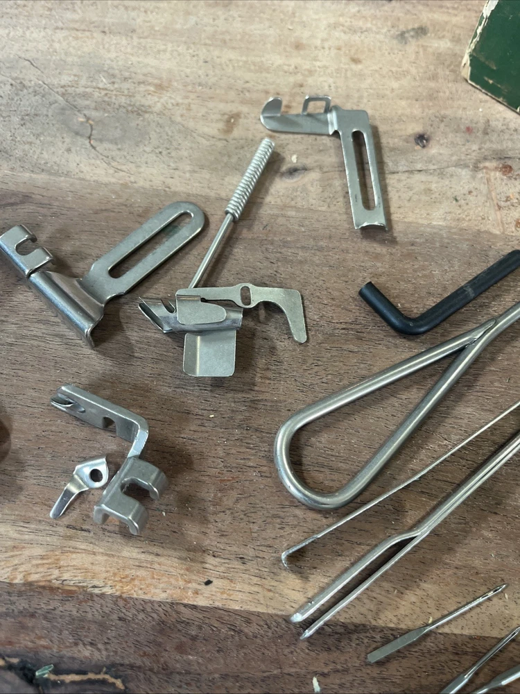 This vintage Singer sewing machine attachment set includes over 20 pieces of original Singer machine accessories. Made in the United States, these high-quality attachments are compatible specifically with Singer machines, including the 120360 model. The set does not include any modified items, ensuring authenticity and compatibility with your Singer sewing machine. Perfect for crafters and seamstresses looking to expand their sewing capabilities with authentic Singer attachments.