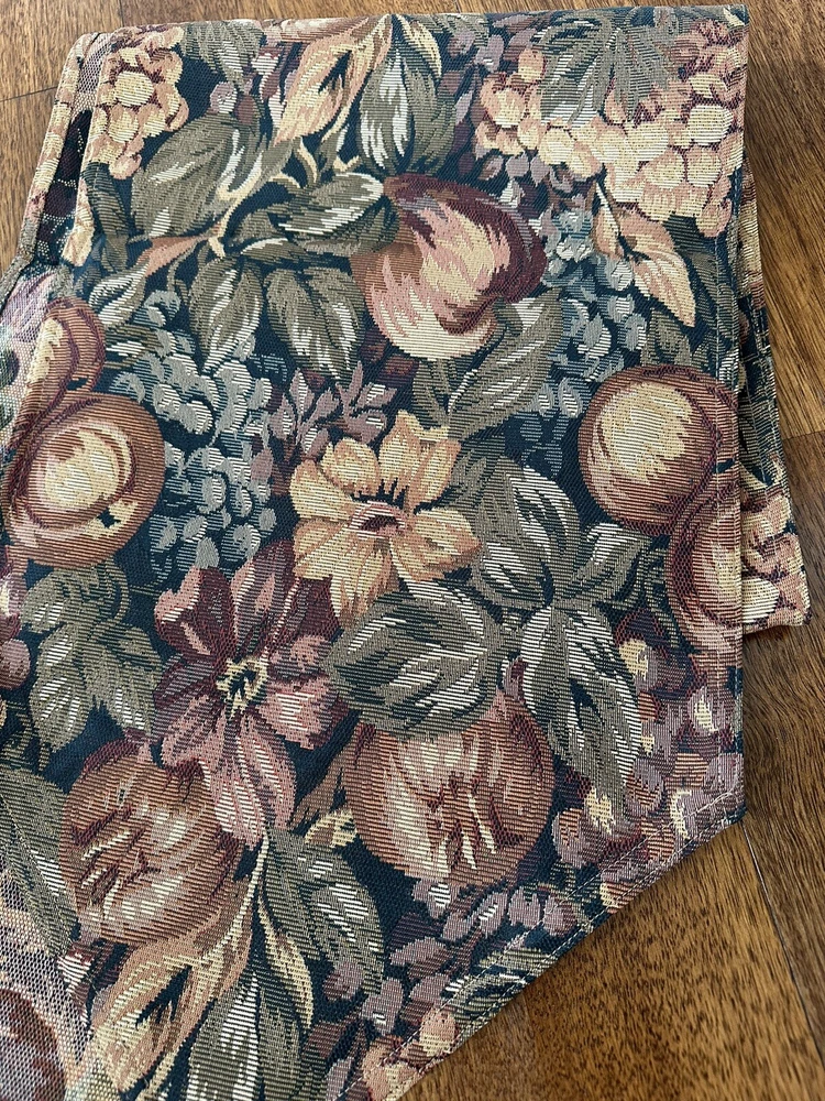 Vtg Tapestry Harvest Vegetables & Fruits Table Runner Tassels Woven 70" x 12" Perfect condition no issues Smoke free pet free home