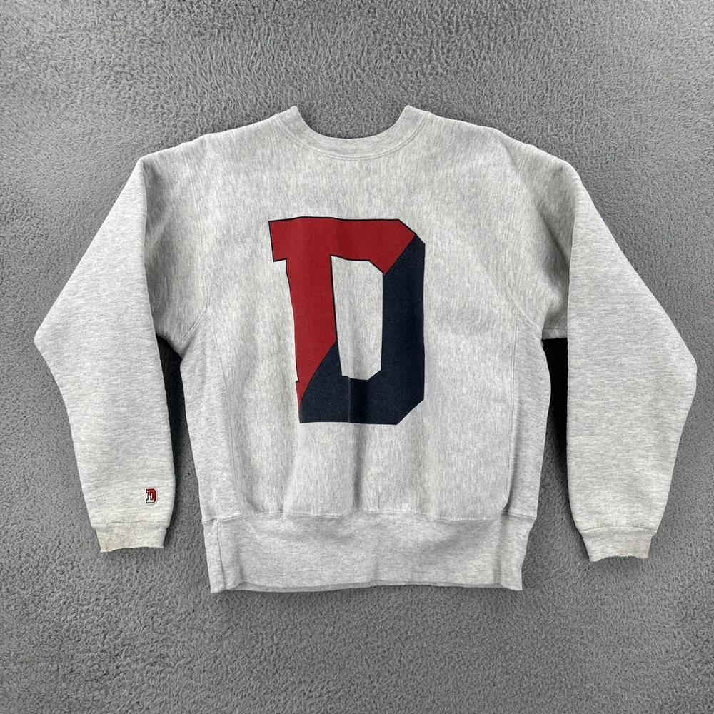 Vintage: Yes Pattern: Graphic Print Department: Men Performance/Activity: Gym & Training, Walking Style: Pullover Features: All Seasons, Graphic Print Color: Gray Size: M Material: Cotton Brand: The Cotton Exchange Size Type: Regular Country of Origin: United States Type: Sweatshirt Theme: College, 90s, USA Neckline: Crew Neck