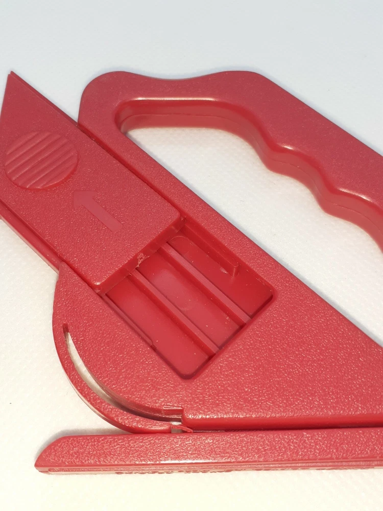 REQUIRES RAZOR BLADE NOT INCLUDED This vintage red gift wrap cutter from Giftco Inc. is the perfect addition to your home office or study. Measuring 3.5 inches in length and .25 inches in width, this free-standing cutter is made of durable plastic and is new in the box. It's a great gift for birthdays or Christmas and adds a touch of retro style to any room. With no assembly required, this cutter is ready to use right out of the box. It features no drawers or shelves, and has a capacity of does not apply. The number of items in set is one, and it is not intended for personalization. This original item is made in China and weighs just one ounce. REQUIRES RAZOR BLADE NOT INCLUDED
