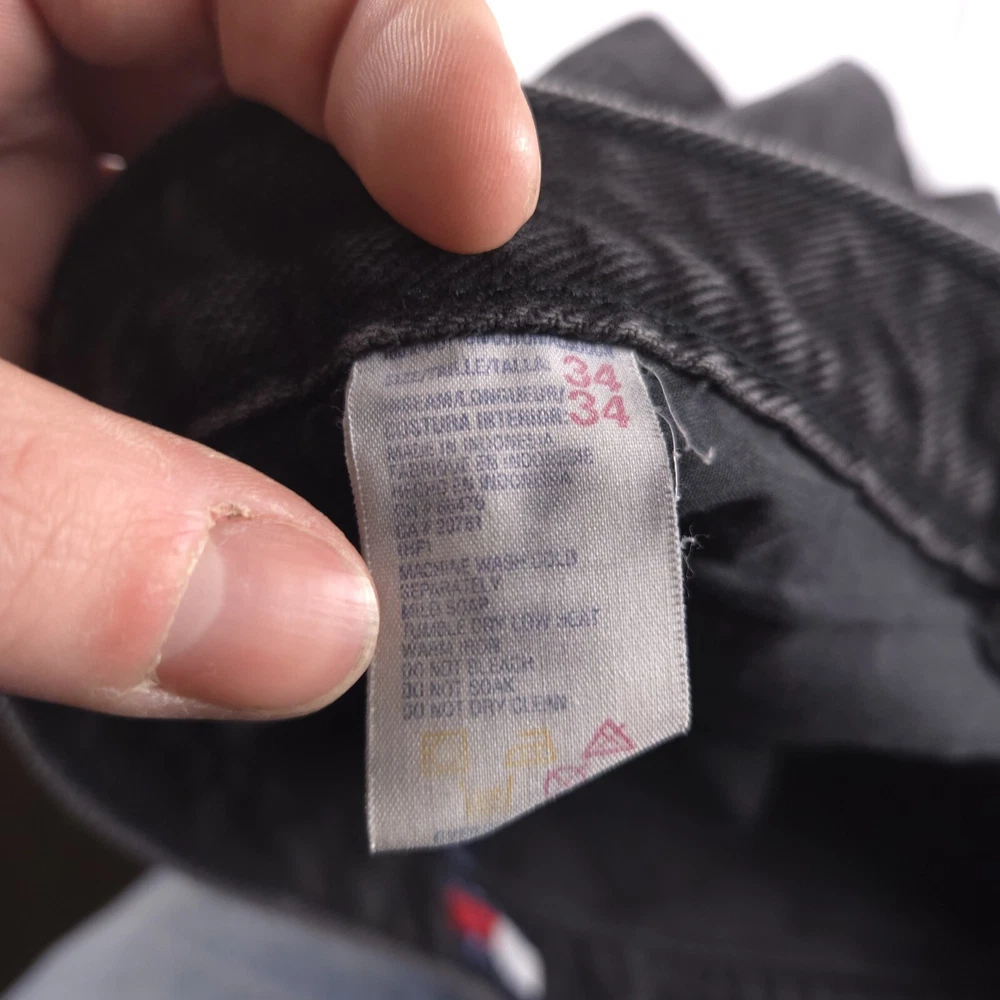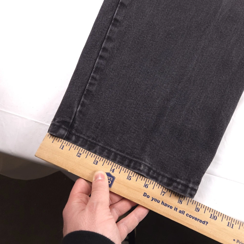 Tagged size 34x34 measures more like 34x32 see photos for measurements to determine proper fit before buying. Thanks. Light fading. Slight baggy loose fit.