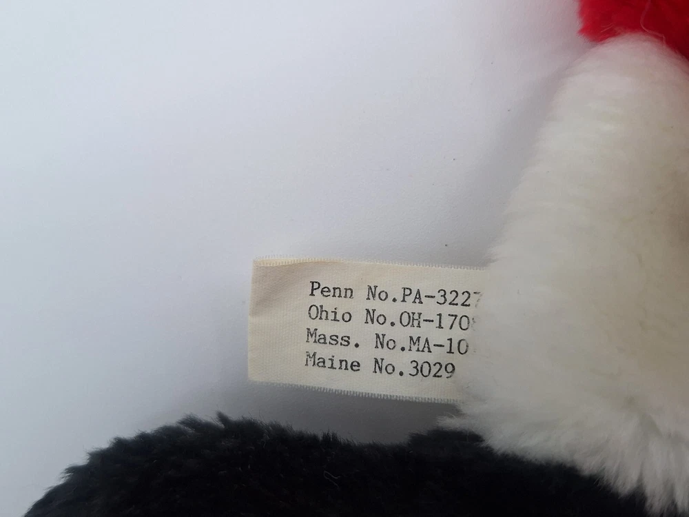 Recommended Age Range:newborn+UPC:n/aYear:1990Features:Retired, WashableColor:Red black & WhiteAnimal:panda bearOccasion:ChristmasSize:Medium (14-24 in)Brand:unionsigngtin13:n/aType:plush stockingCharacter Family:Panda BearAge Level:1-2 Years, 3-4 Years, 4-7, 8-11 Years