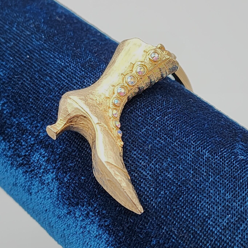 Vtg Victorian Ladies Boot AB Crystals Rhinestone Buttons Shoe Gold Tone Keychain