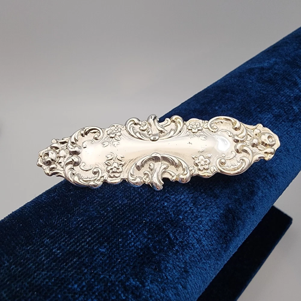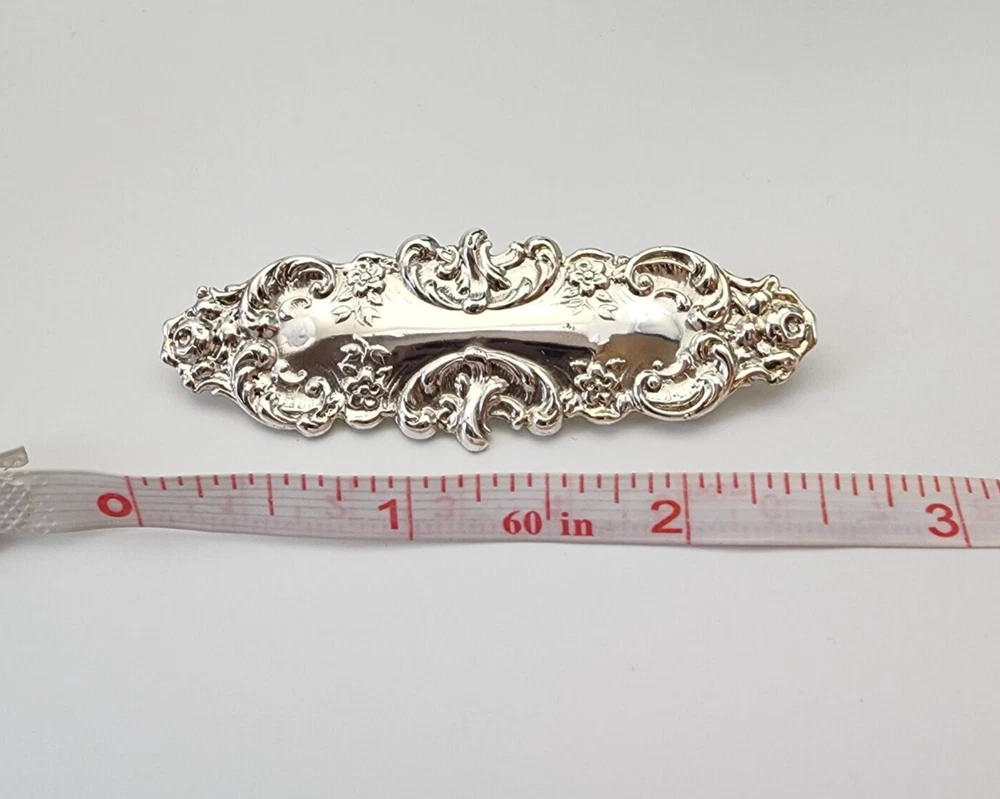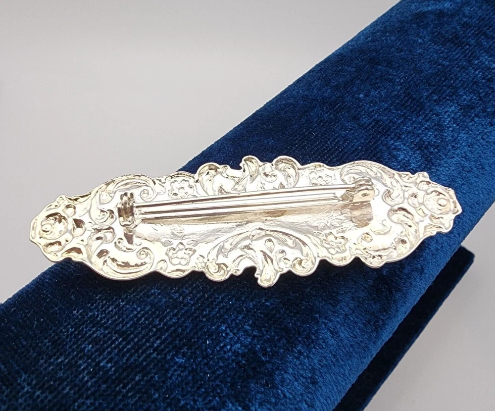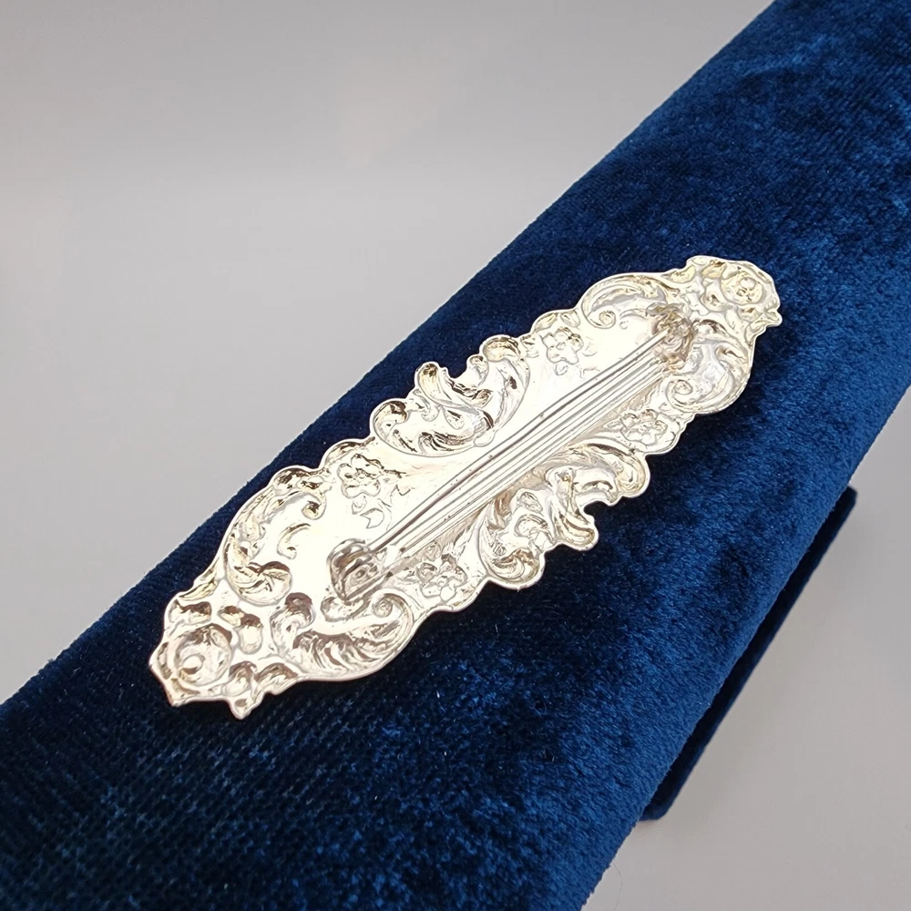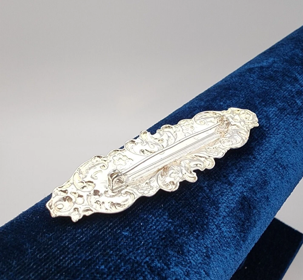 HomeVtg Victorian Style Ornate Stamped Floral Bar Pin Silver Tone Brooch 2.5"