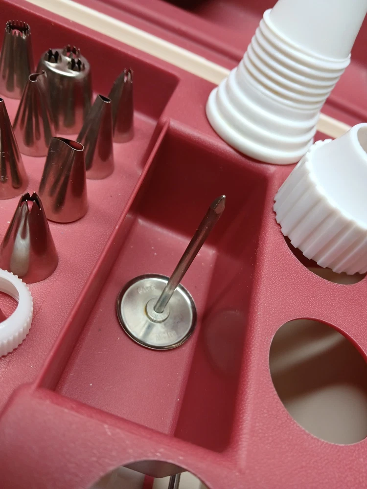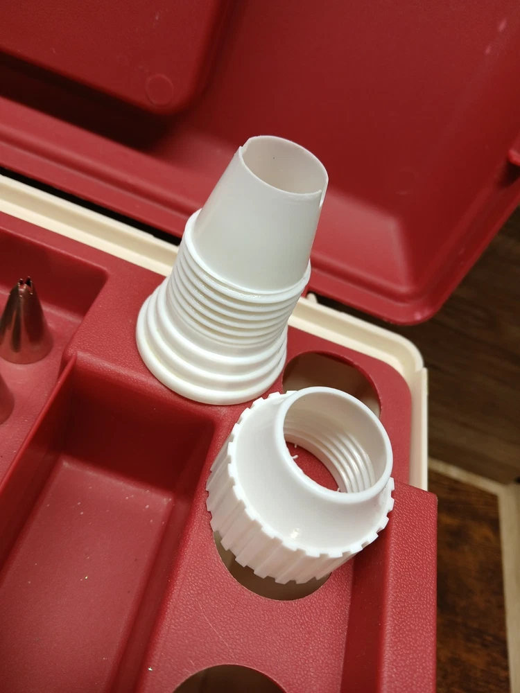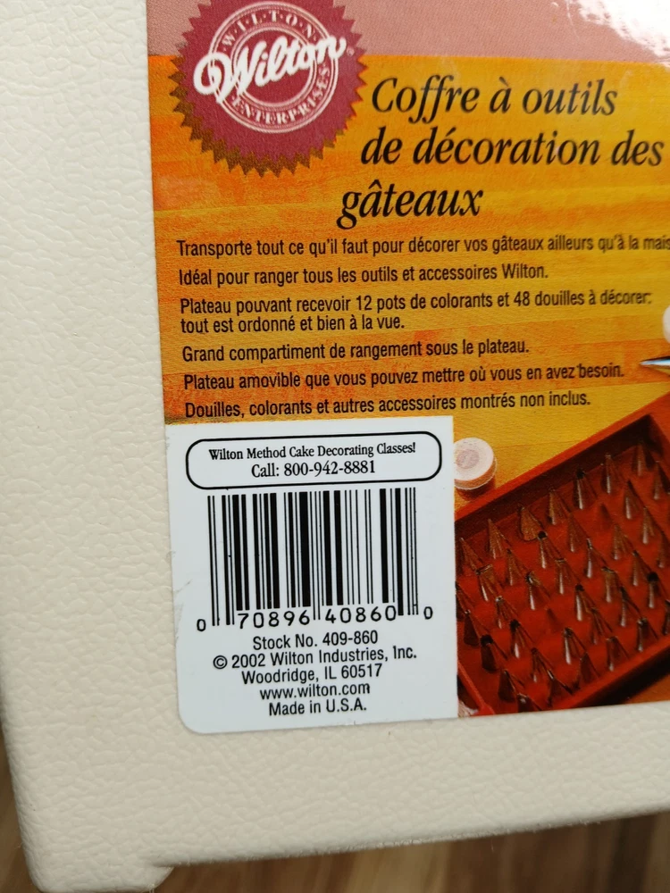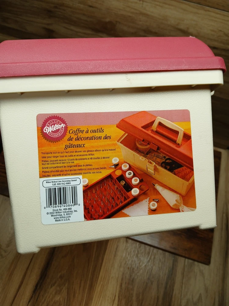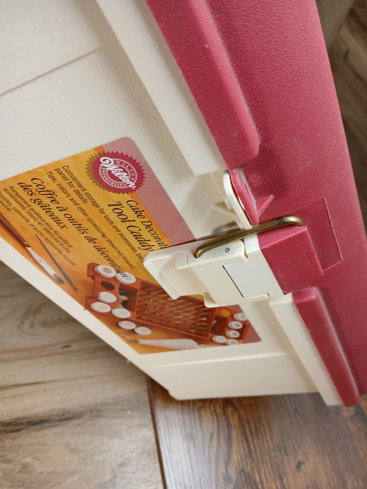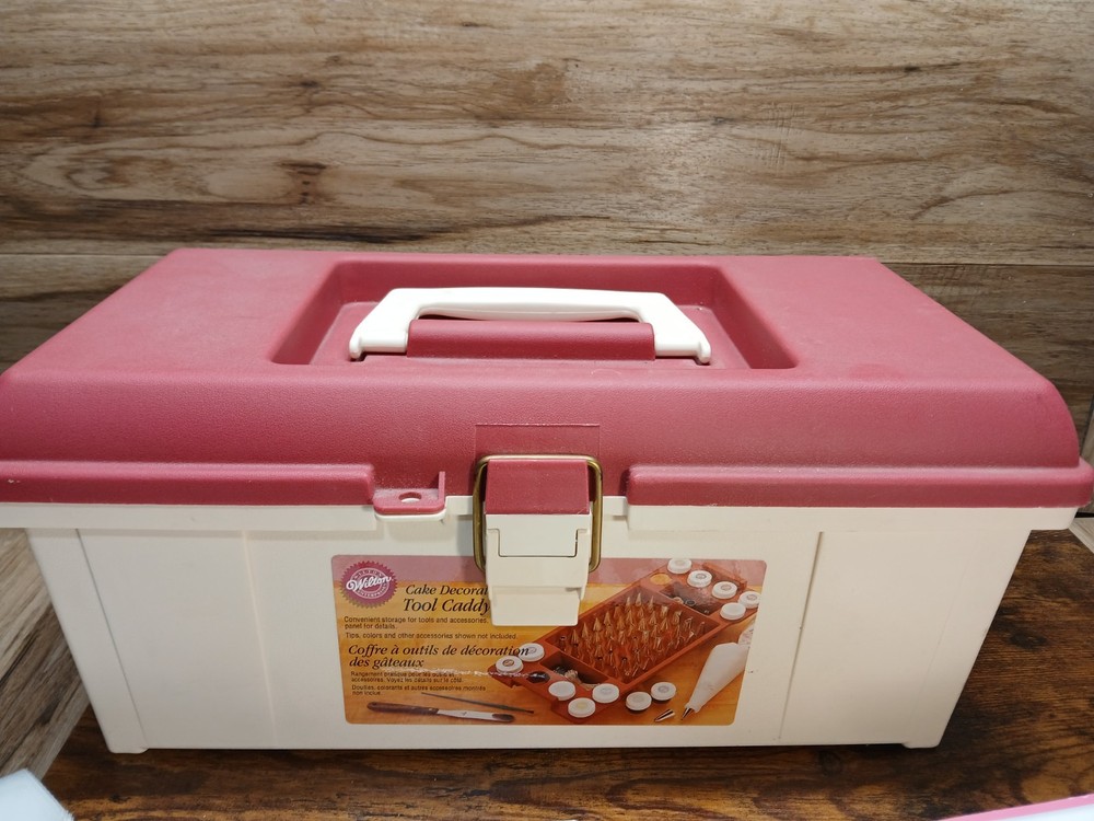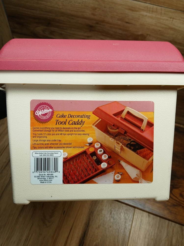 gtin13:070896408600Pattern:SolidModel:409-860Country of Origin:United StatesPersonalize:NoOccasion:All OccasionsItem Width:8.5 inItem Height:7.5"Brand:WiltonFeatures:Easy Clean, Easy Grip, Easy to Clean, With Handle, With Lid, Lift out trayAny Assessories Included:YesColor:Brick Red and CreamCustom Bundle:NoNumber in Pack:1Material:PlasticItem Length:16.5 inMPN:409-860Type:CaddyUPC:070896408600
