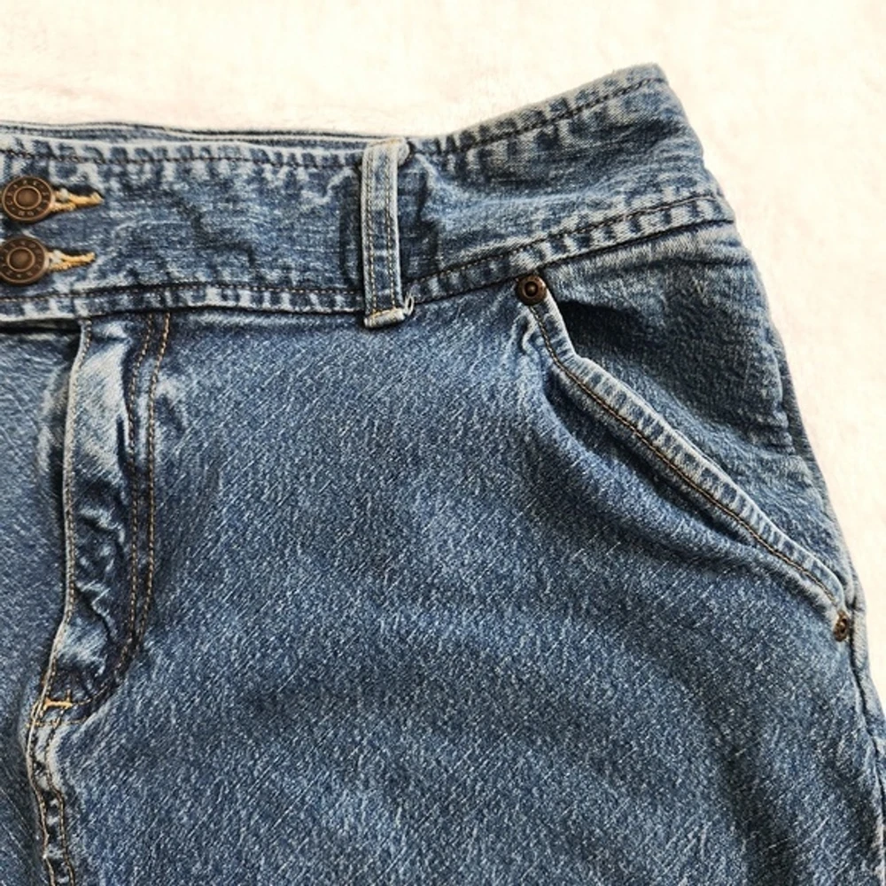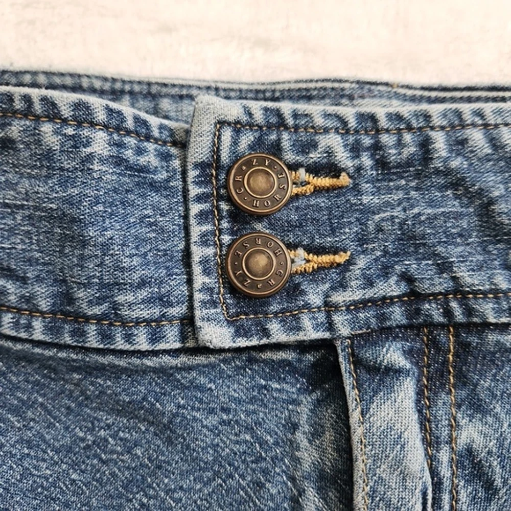 Vtg Y2K Crazy Horse Denim Skirt Women's Size 10 Double Button Blue Medium Wash Vintage 2000s Crazy Horse by Liz Claiborne denim skirt in women's size 10. - Classic medium wash denim with YKK zipper and double button closure. - Buttons and rivets are embossed with "Crazy Horse" logo. - Above knee length. - Minor wear, brand tag is damaged. Otherwise great condition! Super cute staple, perfect for spring and summer. ✦ material: 98% cotton, 2% spandex. Made in Dominican Republic of US fabric. ✦ lay flat measurements: waist: 16 in length: 24 in denim skirt // jean skirt // vintage // grunge // retro // casual // preppy // comfy // indie // jeans // cottagecore // 90s // y2k ✦ All orders ship out within 1-2 days! ✦