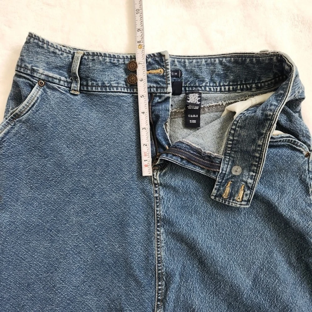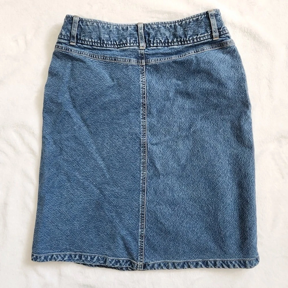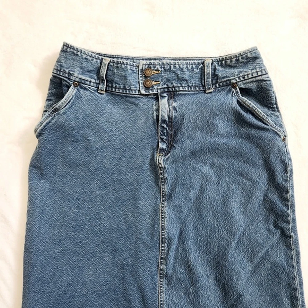 Vtg Y2K Crazy Horse Denim Skirt Women's Size 10 Double Button Blue Medium Wash