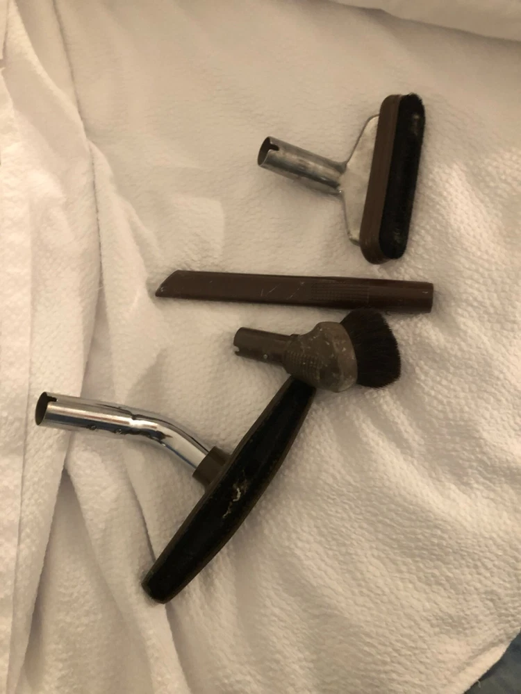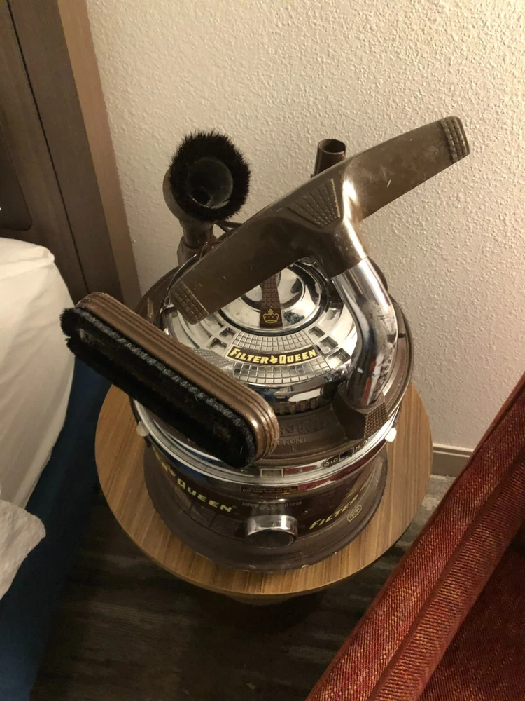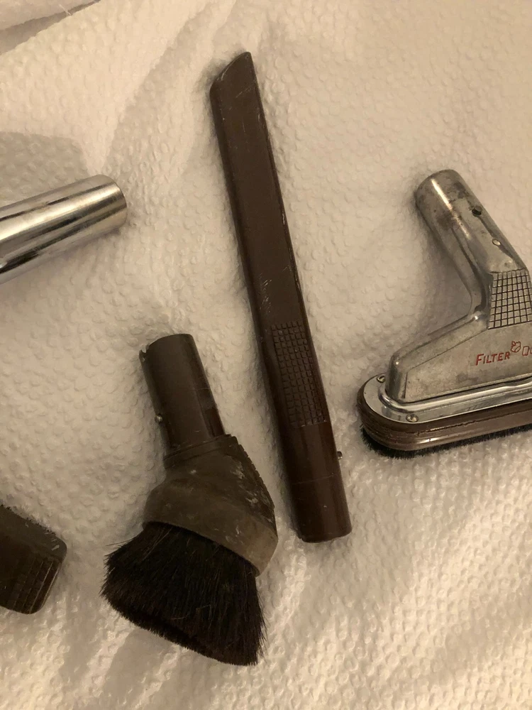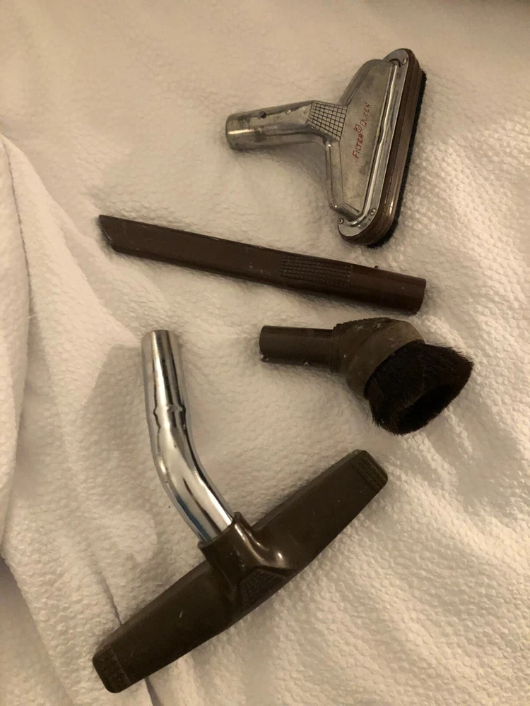 This is a listing for a vintage tested Filter Queen Model K31X vacuum w/ (4) attachments + K-88 floor sweeper + filters + swivel caster set. It is in good condition, but the wand has been taped to hold the cord. Buyer to pay $50.00 for shipping via UPS. Please see my other listings. Thanks for looking!