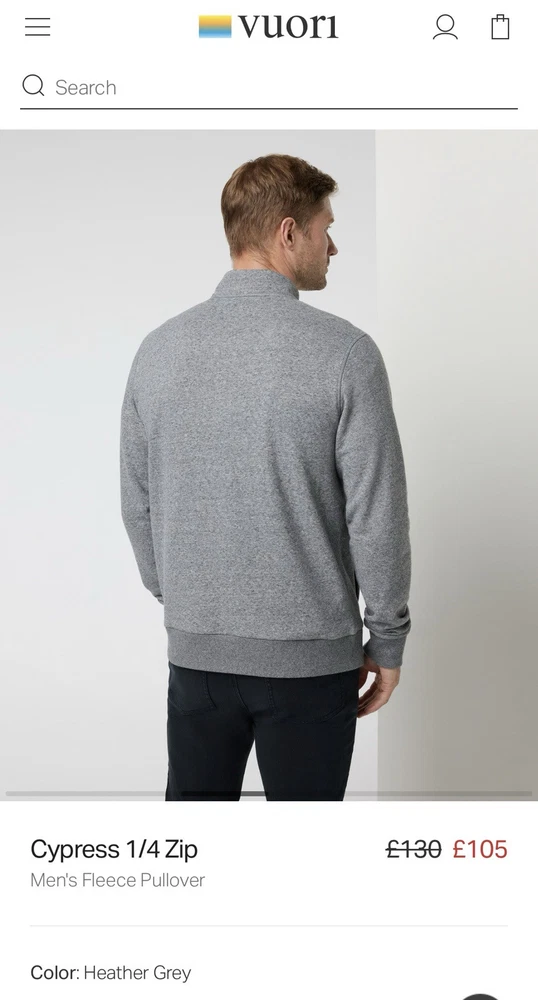 This Vuori Cypress 1/4 Zip Pullover in Light Heather Gray is a versatile activewear top for men. It features a high neck with a stand-up collar, long sleeves, and a 30-inch shirt length. Made from a blended fabric of 70% cotton and 30% polyester, this pullover offers a regular fit and mild compression. The design includes a zipper closure, subtle logo accents, and a solid pattern. Suitable for outdoor activities, sports, and casual wear, this pullover is machine washable and perfect for summer, fall, and spring seasons.