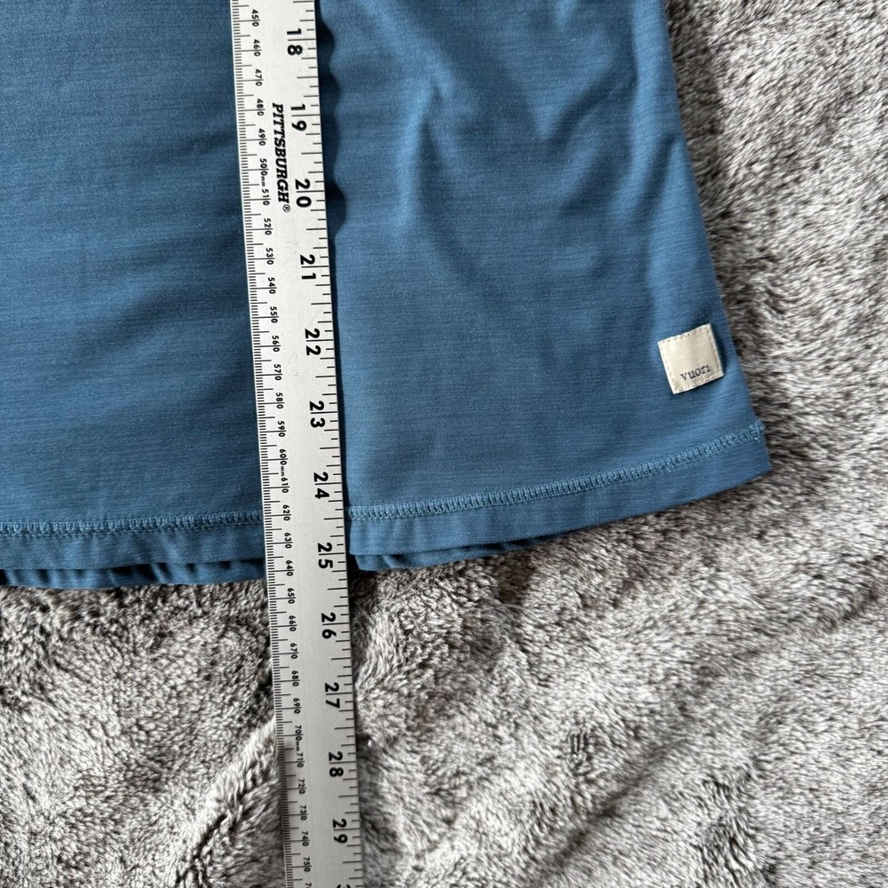 Vuori Lux Performance Tank Gently worn, no known stains or flaws Size - Small Color - Teal/blue Retail - $49 Material - 88% polyester, 12% elastane When activewear meets luxury, you get a light and silky top featuring a halter neckline, a racerback and a breathable but flattering hug throughout the body. The Lux Performance Tank has all the performance properties including moisture wicking, needed for a workout top.