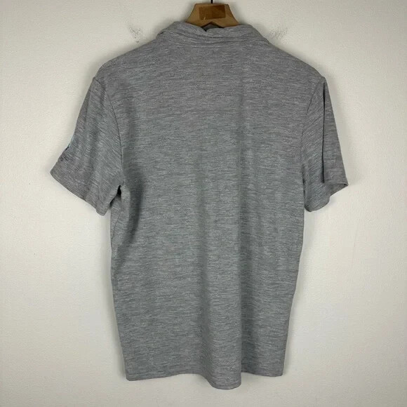 Sz S Embroidered in one sf the sleeves Vuori Men's Ace Polo Shirt is a performance stretch polo designed for athletes and active individuals. It features a collared neckline with a button closure, short sleeves, and an athletic fit. The shirt is made of a lightweight and easy-care polyester knit fabric with moisture-wicking properties, making it suitable for winter, summer, fall, or spring.