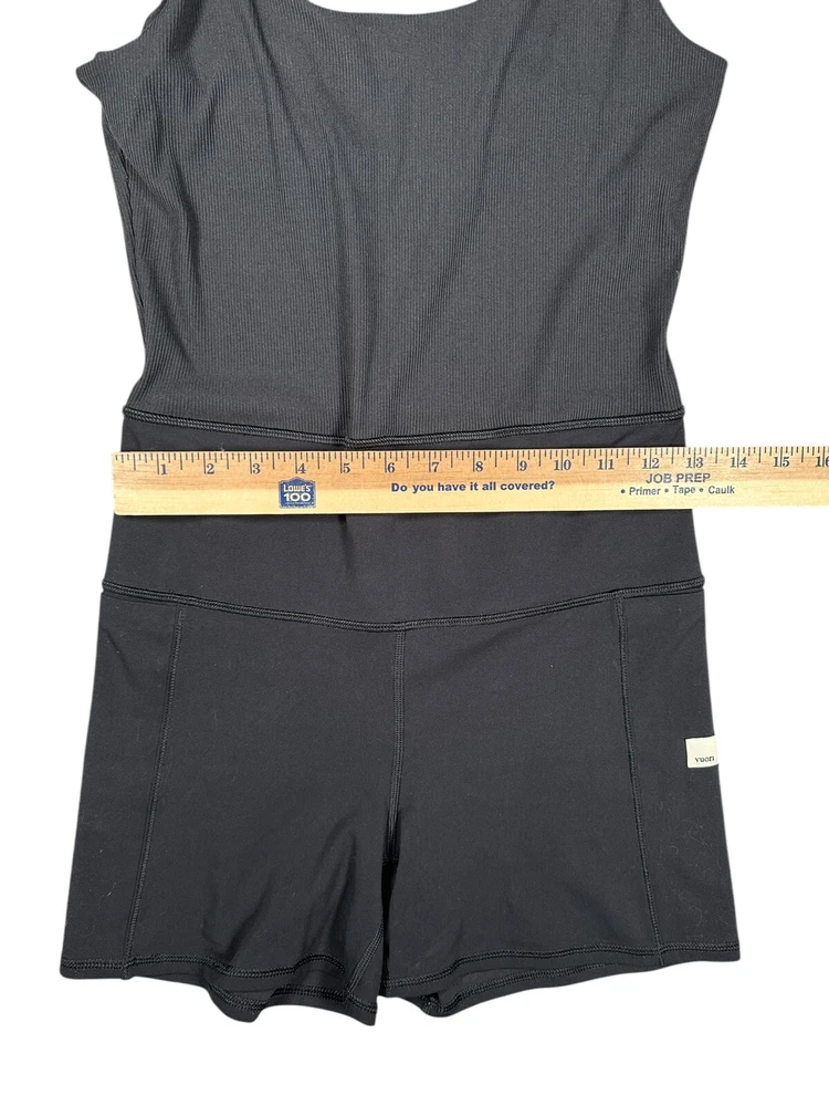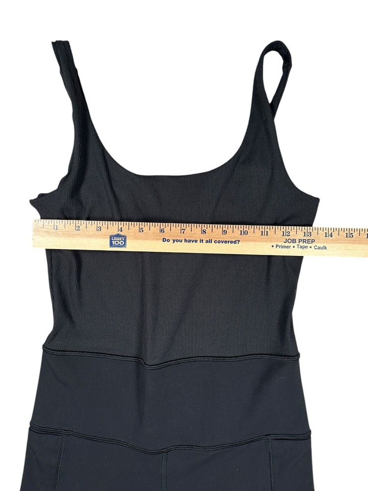 This romper is unbelievably comfortable—soft, stretchy, and perfect for workouts or lounging. The rib-knit fabric moves with you, and the preowned condition is like new. Fast shipping and easy returns make it a stress-free buy! Great fit and super flattering. Love it!