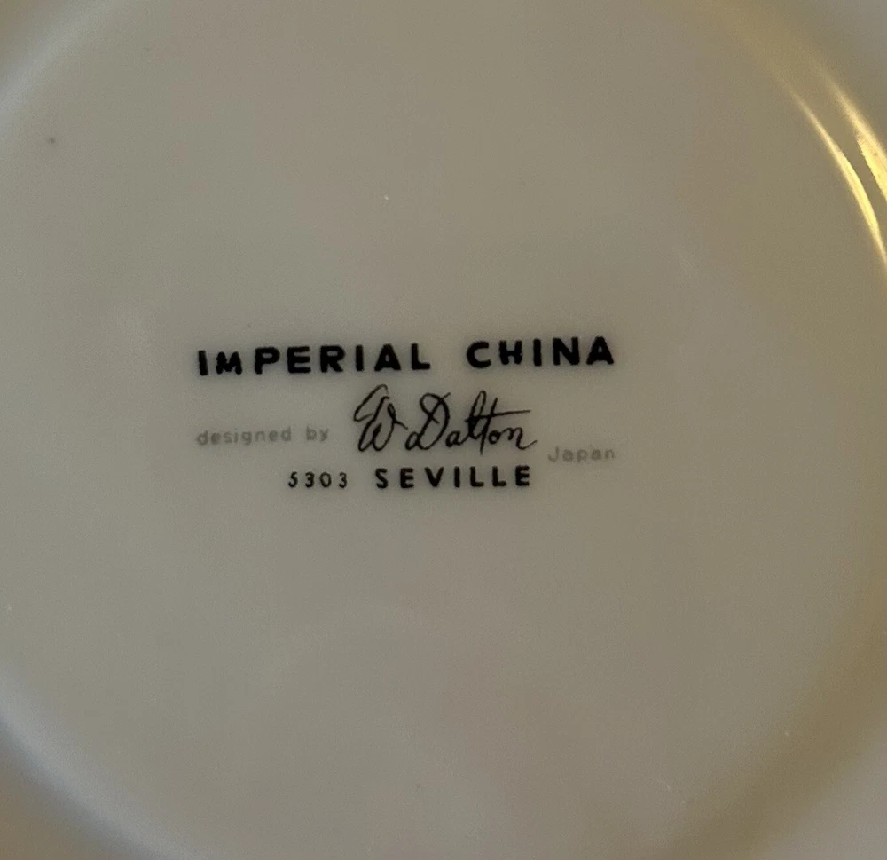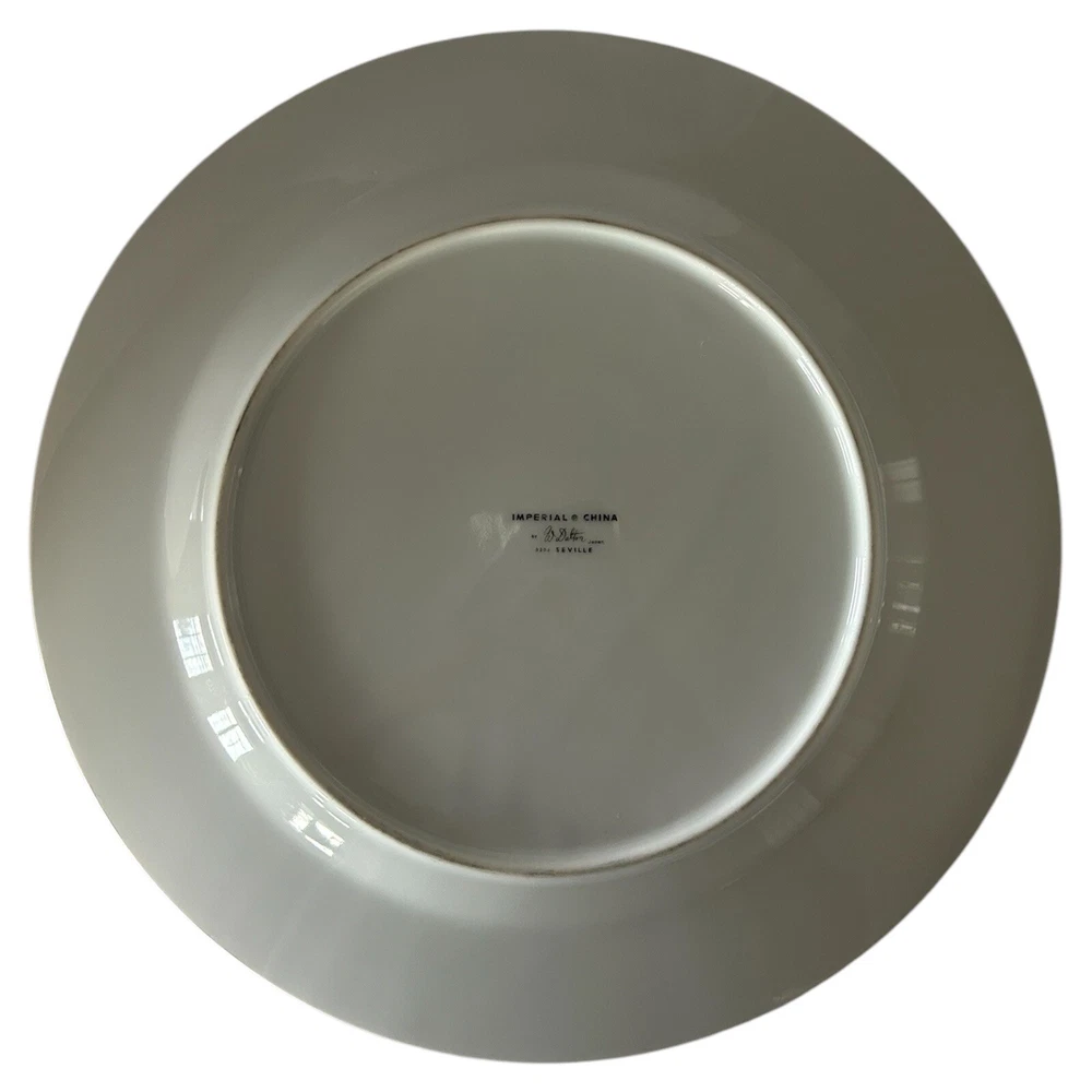W DALTON Imperial China Dinner Plate Style: Seville 5303 Color: White with a Blue and Brown Floral Pattern. Gold trim around the edge. Size: Plate measures 10 and 3/8” Made in Japan. Condition: Excellent pre-owned with no flaws, chips, etc. I have multiple pieces in this set. Please take a look at my other listings if you are needing replacement pieces for this China set. I will combine shipping for items.