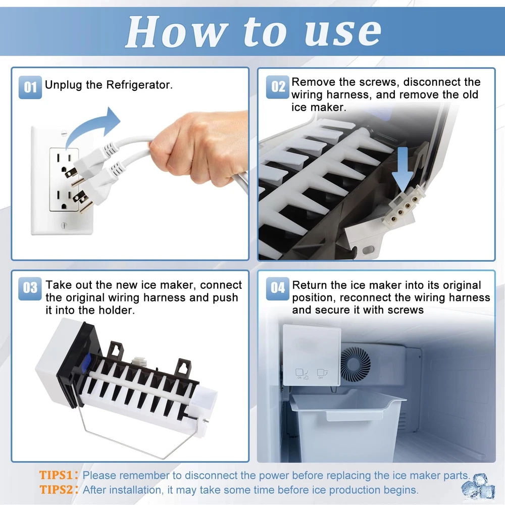 W10300022 Ice Maker Assembly can replaces these parts: WPW10300022 W10122556 W10377190 AP6019085 PS11752389 Replacement Part Models: W10300022 The Ice Maker Replacement replaces these parts: WWPW10300022, W10300022, W10122556, W10377190, RIM0022, 1875826, AH3492269, AP6019085, AP4982689, EA3492269, EAP11752389, PD00016871, PS11752389, PS3492269 Compatibility: The W10300022 ice maker kit is compatible with many models of refrigerators from various brands, such as Whirlpool Kenmore and others. Please refer to the product details for specific models Package Includes: You will receive the ice maker, lift arm, wire harness and other accessories. Extend The Use Time Of The Ice Maker: By replacing the worn or faulty parts regularly, you can solve the problems of the ice maker not working, not making ice, slow ice making, noisy, etc., to prolong the service life of the ice maker, and to make the ice maker run quietly and smoothly. Warm Tips: before installation, please turn off the power and water of the refrigerator, follow the YouTube video above to install; after the installation is completed, the ice maker may take some time (about 24 hours) before it starts to make ice.