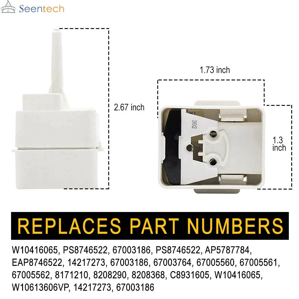 Store New Arrivals Add to Favorite View Feedback Contact W10613606 by - Compatible with Whirlpool, Kenmore, Fridges. Replace Part Number: W10416065, PS8746522, 67003186 Description Item model number W10613606 Mounting Type Not Specified Operation Mode Automatic Contact Type Normally Open Package Dimensions 3.35 x 2.8 x 2.17 inches; 3.84 ounces MODEL NUMBER: W10613606 Refrigerator Compressor Start Relay and Capacitor. Replaces part numbers: W10416065, PS8746522, 67003186, PS8746522, AP5787784, EAP8746522, 14217273, 67003186, 67003764, 67005560, 67005561, 67005562, 8171210, 8208290, 8208368, C8931605, W10416065, W10613606VP, 14217273, 67003186 COMPATIBLE BRANDS: Whirlpool, Kenmore, Jenn-Air, Litton, Crosley, Amana, Dacor, Admiral, Hardwick, Magic Chef, Inglis PREMIUM QUALITY: The part is made from durable high quality material and well-tested by the manufacturer. It is easy to install, saves time and effort, and can save you a large amount of maintenance costs. EASY TO INSTALL: If your Refrigerator makes: Will Not Start, Fridge too warm, Freezer section too warm, Fridge and Freezer are too warm . You may have Replacing the new Start Relay and Capacitor. Replace it with both the run capacitor and the start relay to get your Refrigerator working like new again. ππ’π‘πππππ‘π§ π£π¨π₯ππππ¦ππ¦: Enjoy a 30-day return window on your purchase. Your satisfaction is our priority. If you have any questions, please don't hesitate to contact our customer service team. Product Description W10613606 Refrigerator Compressor Start Relay and Capacitor Compatible for most brands include: Whirlpool, Kenmore, Jenn-Air, Litton, Crosley, Amana, Dacor, Admiral, Hardwick, Magic Chef, Inglis Replaces Part Number: W10416065, PS8746522, 67003186, PS8746522, AP5787784, EAP8746522, 14217273, 67003186, 67003764, 67005560, 67005561, 67005562, 8171210, 8208290, 8208368, C8931605, W10416065, W10613606VP, 14217273, 67003186 Fixes the following symptoms: Will Not Start. Fridge too warm. Freezer section too warm. Fridge and Freezer are too warm Premium Quality: Fits OEM Standards! Easy DIY Fix: Easy to install and will not waste your time. Reliable Products: Effective performance from product and support from us. High Quality, Easy Installation and Quick Solution This includes both the run capacitor and the start relay. The capacitor helps the compressor kick on and off while maintaining a constant temperature to keep things frozen in your freezer. The start relay boosts the compressor, and then shuts off as soon as the motor gets up to speed and the overload provides extra protection against excessive temperatures. The part is made of high-quality materials to ensure they can serve you well for a long time. Durable high quality material Well-tested by the manufacturer Perfect fit Ensure long-lasting Fully assembled for easy installation Wide Compatibility for Model Numbers Kenmore 59661103101 59661164101 59661272100 59661272101 59652672201 59652672202 59652673200 59652673201 59652673202 59651674100 59651679100 59652672200 59672252202 59672253200 59672253201 59672253202 59672254200 59652674200 59652674201 59661102100 59661102101 59661103100 59672232200 59672234200 59672239200 59672252200 59672252201 59671819100 59671819101 59671842100 59671842101 59671844100 59671812101 59671813101 59671814100 59671814101 59671813100 59671844101 59671852100 59671852101 59671854100 59671854101 59671862100 59671862101 59671864100 59671864101 59671872100 59672213200 59672214200 59672219200 59672222200 59672224200 Whirlpool GX5SHTXTT11 GX5SHTXTT00 GX5SHTXTT01 GX5FHTXTQ00 GX5FHTXTQ11 GX5FHTXTQ01 GX5FHTXTS00 GX5SHDXTB00 GX5SHDXTB01 GX5SHDXTB11 GX5SHDXTL01 GX5SHDXTL11 GX5SHDXTS11 GX5SHTXTB00 GX5SHTXTB01 GX5SHTXTB11 GX5SHTXTL01 GX5SHTXTS01 GX5SHTXTS11 GX5SHTXTL11 GX5SHTXTQ00 GX5SHTXTQ01 GX5SHTXTQ11 GX5SHTXTS00 GX5SHDXTQ00 GX5SHDXTQ01 GX5SHDXTQ11 GX5SHDXTS00 GX5SHDXTS01 Amana BB1922FES, ABB1922FEB , ABB1922FEQ11, ABB1922FEB11 ABB1922FED10 ABB1922FEQ, etc. Jenn-Air JBD2256HEB JBC2088HTW JBC2088HTB JBD2256HEW etc. ABOUT US We offer the best prices around on high quality products. Our E-store includes media such as books, movies, music and games while offering electronics, toys, sporting apparel, clothing, tools, general home, garden items and more. SHIPPING We are always working hard to ensure your package arrives as soon as possible. Please understand that some factors like weather, high postal traffic, and the performance of shipping companies are outside of our control. We offer free shipping to the lower 48 states and ship within 2 business days of payment, usually sooner. We do not accept P.O. Boxes. Please provide a physical address. For shipping outside of the continental USA, we only use eBay's Global Shipping Program.The item is shipped to KY and then sent to the rest of the world. International customers are responsible for all duties and taxes. Continue to check out in order to calculate costs for shipping the item to your country. Messages regarding eBay's Global Shipping Program MUST be directed at eBay EXCLUSIVELY. RETURNS We offer a 30-Day Return Policy on items which you are not completely satisfied with. You have the option for a full-refund or an exchange of the item. No returns are available on items shipped outside of the USA. PAYMENT We accept PayPal. CONTACT US This page content is yet to come Please ad us to your favorite seller and visit again later Thank You CUSTOMER SATISFACTION We try our very best to make sure every customer is completely satisfied. If there's a problem, message us! We're happy to help. WE ACCEPT Copyright Β© 2021 AutoDS. | All Rights Reserved
