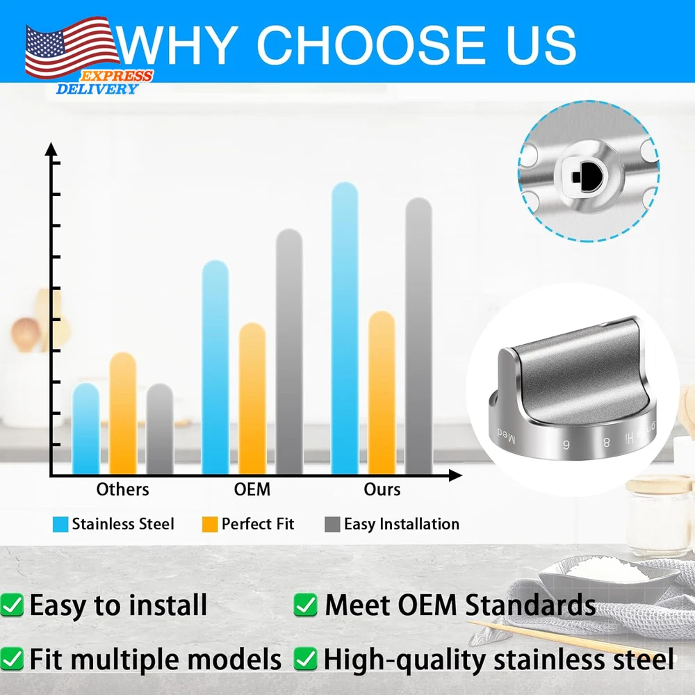 Store New Arrivals Add to Favorite View Feedback Contact W10766544 Gas Stove Knobs Replacement for Whirlpool Range Oven FREE SHIPPING USA Description Item model number W10766544 Number of Items 5 Material Type Stainless Steel Batteries Included? No Unit Count 5.0 Count Batteries Required? No Special Feature Easy to Install, Durable Material Stainless Steel Shape Round Finish Type Stainless Steel Metal Type Stainless Steel, Iron Hand Orientation Ambidextrous Style Compatible Handle Type Knob Item Weight 12.7 ounces Lock Type Push Button Lock Special Features Easy to Install, Durable Exterior Finish Stainless Steel Part Number W10766544 Color Silver Model Info W10766544 Handle Material Stainless Steel Projection Distance 1.2 Inches Included Components 5 Γ W10766544 stove/ oven/ range control knobs, for Whirlpool Gas Range WFG540H0ES0 WFG540H0ES1Replaces W10430807 W10676228 EAP10067059 Product Dimensions 1.9"L x 1.4"W π£ππ₯ππππ§ πππ§ - Compatible with Whirlpool Gas Stove Ranges WFG540H0AH0, WFG710H0AS0, WFG710H0AS1, WFG540H0AB0, WFG540H0AB1, WFG540H0AB2, WFG720H0AS0, WFG720H0AS1, WFG540H0AS0, WFG540H0AE0, WFG540H0AE1, WFG540H0AE2, WFG540H0AH1, WFG540H0AH2, WFG540H0AS2, WFG540H0AW0. Replaces part # 4248219, AP5958476, PS10067059, EAP10067059, W10430807, W10676228 π£π₯π’ππ¨ππ§ π¦π£ππππππππ§ππ’π‘π¦ - Package includes: 5 Γ W10766544 gas stove/ oven/ range control knobs compatible with whirlpool . Size: 1.9 inch/ 4.83 cm in diameter, 1.4 inch/ 3.46 cm in height, "D" design: 0.2 inch/ 0.50cm in interface (Please refer to the picture for details) Easy Installation: Without using any installation tools, simply remove the original knob (not bent up or down the knob), and replace it with our new W10766544 stove control knob π π¨π¦π§-π¦ππ πͺπππ‘ π£π¨π₯ππππ¦ππ‘π πͺππ¬π³π²π²π±π°π° - If there aren't information knobs such as "Off" and "Ignite" on the side of your knob, please do not buy this stove knobs replacement for whirlpool, the model you need is W10594481. This W10766544 knob fixes the following symptoms: β· Will not start β· Will not turn β· Will not stay on π¦π¨π£ππ₯ ππ₯πππ§ - Our W10766544 cooktop knob replacement for whirlpool is made of sturdy metal high-quality stainless steel, not easy to damage high-strength materials. The middle part uses a "D" design interface, and there is a metal insert inside the interface. And a metal ring is added to the interface to effectively prevent damage to the installation interface to ensure service life π¦ππ’π£ πͺππ§π ππ’π‘πππππ‘ππ - W10766544 cooktop replacement is made of quality material. Funmit adhere to provide all customers with a simple, streamlined shopping experience of large appliance replacement parts, and prove that we have the highest quality parts and service out there. We stand by our products, and our customers are our focus as a business. If you have any quality problem, please contact Funmit customer service team in time, and we will try our best to solve your problems Product Description ABOUT US We offer the best prices around on high quality products. Our E-store includes media such as books, movies, music and games while offering electronics, toys, sporting apparel, clothing, tools, general home, garden items and more. SHIPPING We are always working hard to ensure your package arrives as soon as possible. Please understand that some factors like weather, high postal traffic, and the performance of shipping companies are outside of our control. We offer free shipping to the lower 48 states and ship within 2 business days of payment, usually sooner. We do not accept P.O. Boxes. Please provide a physical address. For shipping outside of the continental USA, we only use eBay's Global Shipping Program.The item is shipped to KY and then sent to the rest of the world. International customers are responsible for all duties and taxes. Continue to check out in order to calculate costs for shipping the item to your country. Messages regarding eBay's Global Shipping Program MUST be directed at eBay EXCLUSIVELY. RETURNS We offer a 30-Day Return Policy on items which you are not completely satisfied with. You have the option for a full-refund or an exchange of the item. No returns are available on items shipped outside of the USA. PAYMENT We accept PayPal. CONTACT US This page content is yet to come Please ad us to your favorite seller and visit again later Thank You CUSTOMER SATISFACTION We try our very best to make sure every customer is completely satisfied. If there's a problem, message us! We're happy to help. WE ACCEPT Copyright Β© 2021 AutoDS. | All Rights Reserved