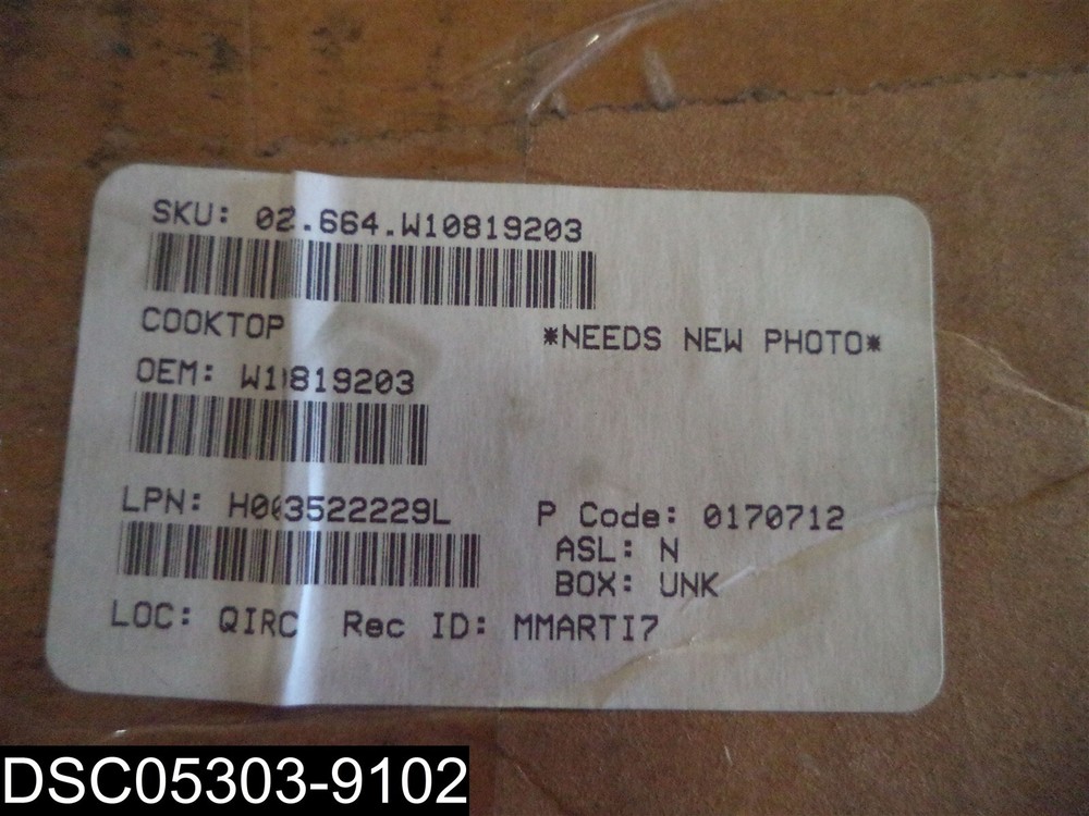 This item is:________W10819203 whirlpool Black Cooktop 022.664.W10819203_________ This item is new, however, The original packaging may be missing or imperfect. See photos. Includes only what is shown in the picture. 1005 Warehouse Location:___Warehouse #1_Shelf_________15260_________________________ Sales tax will be added to items shipping to locations in Kansas. _____________________________________________________________________ _____________________________________________________________________ _____________________________________________________________________ By bidding and or purchasing this item(s) you (the buyer) agree to the following terms and conditions: 1. An item is defined as the following: The unit or units purchased in the ebay listing, (it could be a single unit, multiple units, a mixture of units, a variety of units, the incorrect unit or any combination of units not mentioned). It also includes the packaging, or lack thereof, the shipping label, and any contents place in the package by error. 2. The Seller is defined as Seller and/or Consignor. 3. The buyer is defined as the entity that purchased the item from Seller and/or Consignor. 4. If the buyer does not agree to these terms and conditions then do not purchase from us. 5. All items are sold AS IS No warranty or liability is expressed or implied. 6. The buyer agrees that: All items are shipped without insurance. It is the responsibility of the buyer to let us know if they want insurance on the item. Insurance cost is $2.00 for every $50 insured, in $50 increments. The buyer agrees that if no insurance is purchased and the item is not received or received damaged that no claim shall be brought against the seller. 7. We only ship to PayPal confirmed street addresses, no exceptions. No PO Boxes, APO, FPO or similar addresses. 8. The buyer agrees that the sale is considered complete once the carrier has picked up the item from the seller. 9. The buyer agrees that if there is a dispute that arises that the dispute will be settled in the State of Kansas under the laws of Kansas. 10. The buyer agrees that the item fits the buyers purpose prior to bidding. 11. The buyer agrees to indemnify and hold harmless the seller from any and all claims arising out of any conditions or defects for the item or items that they purchased 12. We only ship to the continental United States. The shipping price quoted is for the continental United States Only. All other locations will be charged extra. Out of county buyers agree to pay any additional charges that we ask them to pay including but not limited to import duties, shipping costs, packaging costs, time costs, and other costs. If the item is shipped via ebay global shipping program these terms and conditions still apply. 13. Claims made against the carrier for non-delivery, lost in transit or any other reason shall be made solely by the buyer without aid from the Seller. 14. In the event that any clauses or phrases contained here within are ruled out by a judge, the law, a lawyer, jurors, and or any other entity all others remain in effect. 15. If any claim is brought against the Seller the buyer agrees to pay for any and all costs including legal fees, travel, time, accommodations, and other costs. Late payment will result in the seller charging interest at the maximum legal rate. 16. In any event or circumstance the maximum liability to the Seller is the purchase price plus cost of shipping plus sales tax if applicable. This amount is not subject to inflation, interest, inconvenience fee or any other price adjustment. 17. The buyer agrees there will be no refunds for any reason outside of the Ebay return policy. 18. The buyer understands that our items are wholesale, overstock, unclaimed, foreclosure purchase or salvage goods. Most boxes have been opened for inspection and photos. If items are listed as new they may not come with original packaging. 19. The buyer agrees that they are trained, licensed, qualified, and understand how to properly use, dispose of and handle the product in accordance with law and regulations. 20. The buyer agrees that if any part of these terms and conditions is determined to be void that it does not void or alleviate the enforcement of the remainder of this contract. 21. Seller and/or Consignor is not an authorized distributor, reseller or representative of the products featured on this website. All product names, trademarks, brands and logos used on this site are the property of their respective owners. The depiction, description or sale of products featuring these names, trademarks, brands and logos is for identification purposes only and is not intended to indicate any affiliation with or authorization by any rights holder.