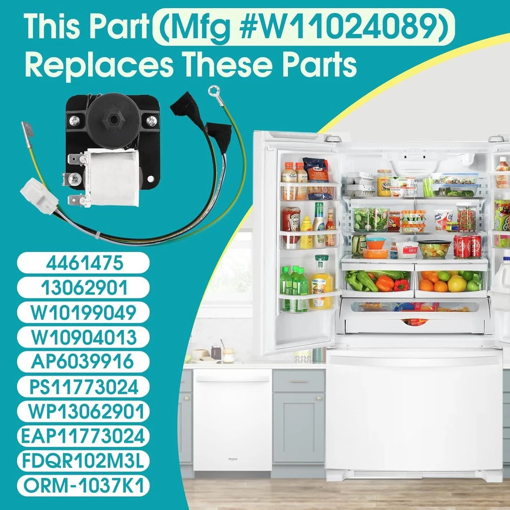 W11024089 Refrigerator Evaporator Fan Motor Compatible with JennAir Kenmore KitchenAid Maytag Whirlpool, Replaces 13062901 W10199049 W10904013 WP13062901 AP6039916 FDQR102M3L ORM-1037K1 etc Product Details Package Dimensions : 3.94 x 3.39 x 2.64 inches; 13.44 ounces Item model number : W11024089 Manufacturer : GREALTH Country of Origin : China Brand: GREALTH Item Weight: 0.38 Kilograms Manufacturer: GREALTH 【Product Overview】W11024089 refrigerator evaporator fan motor. This is a new replacement part 【Quality product】W11024089 refrigerator evaporator fan motor is an OEM part. It can fix abnormal refrigerator temperature problems. It is fully tested to ensure long-term effective operation 【Compatible Brands】W11024089 evaporator fan motor is compatible with Dacor, Ikea, Jenn-Air, KitchenAid, Maytag, Whirlpool, Kenmore refrigerator. Not sure if it's compatible with your refrigerator? Welcome to email us your refrigerator model 【After-sale Service】For any quality issues, you can request to send a new one or a refund. What you buy is not only a product, but also a whole set of our after-sales service. Any questions, just one email, we will always solve for you within 12 hours