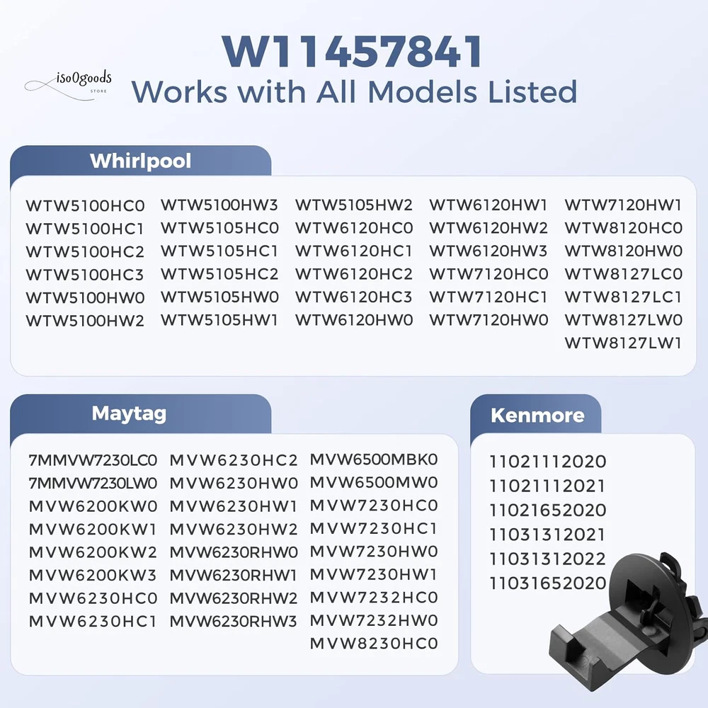 W11457841 Washer Lid Lock – Replacement for Whirlpool & Maytag Washing Machines Product Description Upgrade your washing machine with the W11457841 washing machine lid lock, a high-quality replacement part designed for Whirlpool and Maytag washers. This durable part ensures the effective operation of your washer, keeping it running smoothly and securely. Key Features: Quality Construction : The W11457841 lid lock is made from durable plastic, offering long-lasting reliability. It has been fully tested to ensure perfect fit and function, providing an effective replacement part for your washing machine. Replaceable Models : The W11457841 door lock is a direct replacement for multiple models, including: W11091027, 4959179, AP6884238, PS12720638, EAP12720638. Compatible Brands : This replacement lid lock is compatible with various Whirlpool and Maytag washers, including models like WTW500CMW0, MVW6200KW0, and more. Not sure if it’s the right fit for your washer? Contact us with your washer model, and we’ll confirm compatibility. After-Sale Service : We provide a satisfaction guarantee with all purchases. If you encounter any quality issues, we offer hassle-free returns or replacements within 12 hours. Our goal is to ensure your complete satisfaction with every purchase. Compatible Models : Whirlpool : WTW500CMW0, WTW5100HC0, WTW5100HW0, WTW5105HC0, WTW6120HC0, WTW7120HC0, WTW8120HC0, WTW8127LC0, WTW8127LW0, etc. Maytag : MVW6200KW0, MVW6230HC0, MVW6230HW0, MVW7230HC0, MVW8230HC0, MVW6500MBK0, etc. Kenmore : 11021112020, 11021652020, 11031312021, 11031652020, etc. Why Choose W11457841 Lid Lock? Reliable and Durable : Made with high-quality materials to ensure long-term operation. Easy to Install : It’s designed for easy replacement, ensuring minimal downtime for your washing machine. Perfect Fit : Fully tested to ensure it works with the specified models, providing a seamless installation experience. Package Includes : 1 x W11457841 Washer Lid Lock Customer Support :