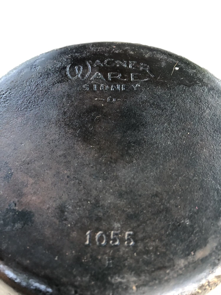 WAGNER WARE SIDNEY O 1055B CAST IRON SKILLET SITS FLAT. Condition is "Used". See photos.