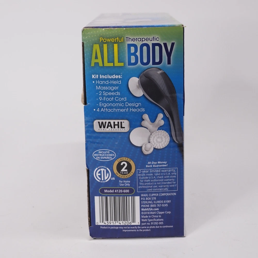 Power Source:Corded Electricgtin13:043917412061Massage Functions:Pain Relief, VibratingColor:GrayUPC:043917412061Country/Region of Manufacture:ChinaCustom Bundle:NoBrand:WahlType:Hand MassagerBody Area:Full BodyNumber of Massage Heads:4