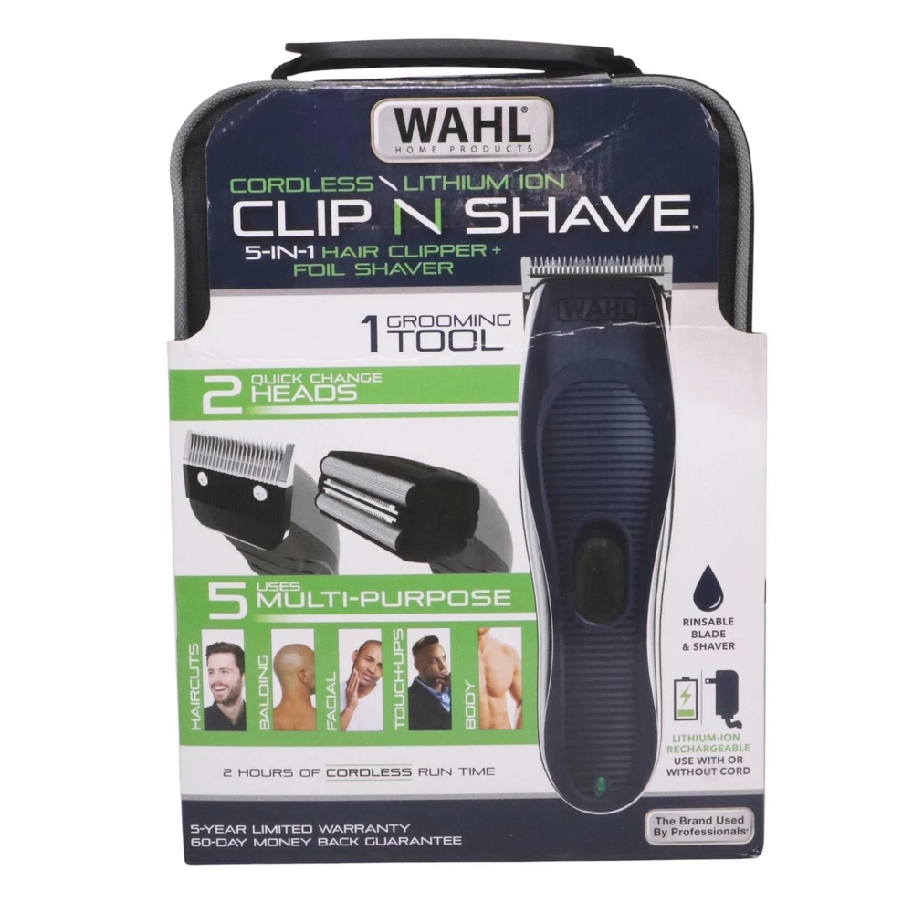 WAHL Home Clip N Shave Cordless Lithium Ion 5-in-1 Hair Clipper + Foil Shaver The Wahl® Cordless Lithium-Ion Clip 'N Shave™, a revolutionary addition to your grooming arsenal. This cutting-edge hair clipper offers unparalleled versatility, making it the ultimate choice for a complete hair cutting and face/body shaving. Features Details Shipping Weight: 0.0 pounds Item model number: 89523952 Fast & Free Shipping Orders are shipped out within 2-3 business days usually and delivered to your doorstep as quickly as possible. Competitive Pricing Our competitive prices are some of the lowest that you will find on the internet. Rest assured that you're getting a good deal when purchasing from us. 30-day Money Back Guarantee We are committed to making sure that you leave this transaction satisfied. If you're unhappy with the product for any reason, you may return it back for your money-back or a replacement if available within 30 days.