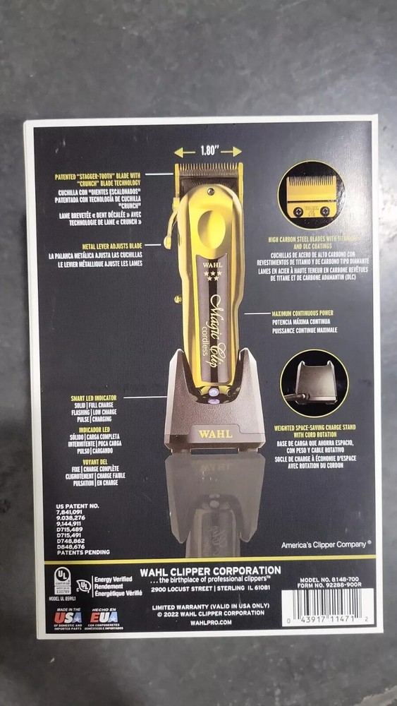 You may also like Wahl 8173-700 5 Star Series Vanish Double Foil Corded/Cordless Shaver PRO BARBER 59.99 USD Free shipping Black Puffy Makeup Bag Pouch Clutch Cosmetic Case-NEWChan Beauty Gift 15.36 USD Free shipping Wahl Cordless Barber Combo Black Magic Clip Clipper & Detailer Trimmer 3025397 127.49 USD Free shipping Exquisite Watch Storage: Premium Box Designed for Officine Panerai Collections 103.99 USD Free shipping Wahl Professional 8081 5-Star Series Detailer Powerful Motor Corded Trimmer NEW! 58.74 USD Free shipping Holiday 2025 Charm Keyring Keychain 16.99 USD 6.99 USD Braun 51B Replacement Head Foil for Braun Series 5 WaterFlex Original 22.49 USD Free shipping New US Wahl 8509 Professional 5 Star Cordless Senior Clipper Metal Edition 87.49 USD Free shipping christmas tree kissing ball 2x Wreath Making Stems Artificial Mistletoe Pick 18.88 USD Free shipping Braun 83M Series 8 Replacement Head Foil and Cutter Cassette 31.24 USD Free shipping Wahl 8412 Professional 5 Star Series Cordless Retro T-Cut Trimmer NEW 94.99 USD Free shipping Braun Electric Shaver 32B Series 3 Replacement Head Cassette Foil Cutter Black 23.74 USD Free shipping New Wahl 100 Year Anniversary Limited Edition 1919 Clipper Set in Box 94.74 USD Free shipping New Wahl 8504-400 Professional 5 Star Cordless Senior Clipper - Black 90.99 USD Free shipping 2 Pack Braun 92B Shaving Head Replacement Foil Cassette Electric Shaver Series 9 74.99 USD Free shipping Braun 40B Replacement Cassette Head for CoolTec Shaver FAST SHIPPING Genuine 28.74 USD Free shipping Wahl 5-Star Balding Clipper | #8110 62.49 USD Free shipping 21B Replacement Shaver Head Foil Cassette Blade for Braun Shavers Series 3 Black 21.86 USD Free shipping BOTTEGA VENETA BV - 1273 Unisex Men's Sunglasses Frame with Reading Hinge 150.49 USD Free shipping Braun Series 3 30B Cassette Foil &Cutter Replacement Head 7000/4000 Series Black 27.49 USD Free shipping Braun Series 5/6 53B Electric Shaver Replacement Head 24.99 USD Free shipping Braun Series 9 92S Replacement Shaving Head Cassette Foil Electric Shaver Silver 46.24 USD Free shipping JACQUES MARIE MAGE COMMANDER Fashionable Unisex Sunglasses Plating 56-19-146mm 131.32 USD Free shipping 52B Series 5 Replacement Shaver Head Foil Cassette for Braun Electric Shavers 29.99 USD Free shipping Braun 51S Series 5 Electric Shaver Foil & Cutter Head Replacement Pack,Silver 27.49 USD Free shipping For Braun Shaver Heads Replacement Part 94M Silver Series 9 Pro Electric Razors 46.24 USD Free shipping 32B Replacement Shaver Head Foil Cassette for Braun Shavers Razor Series 3 Black 22.49 USD Free shipping BRAUN 32S Replacement Foil Head Cutter Blades Shaver Razor Cassette Series 3 NEW 28.74 USD Free shipping 1 PACK Braun Shaver Head Series 3 ProSkin 32S Cassette SEALED MADE IN GERMANY 19.99 USD Free shipping Braun 9000 Series 7 replacement Cassette Foil Cutter Shaver Head 70S Model New 28.74 USD Free shipping . Introducing the Wahl Magic Clip Gold, a premium professional hair clipper designed to deliver exceptional performance and style. This sleek and stylish clipper features a stunning gold finish, adding a touch of elegance to your grooming routine. With its powerful motor and precision blades, the Magic Clip Gold effortlessly cuts through all hair types, providing a smooth and precise trim every time. Whether you're a professional barber or a grooming enthusiast, this top-of-the-line clipper is a must-have tool for achieving professional-looking haircuts with ease.