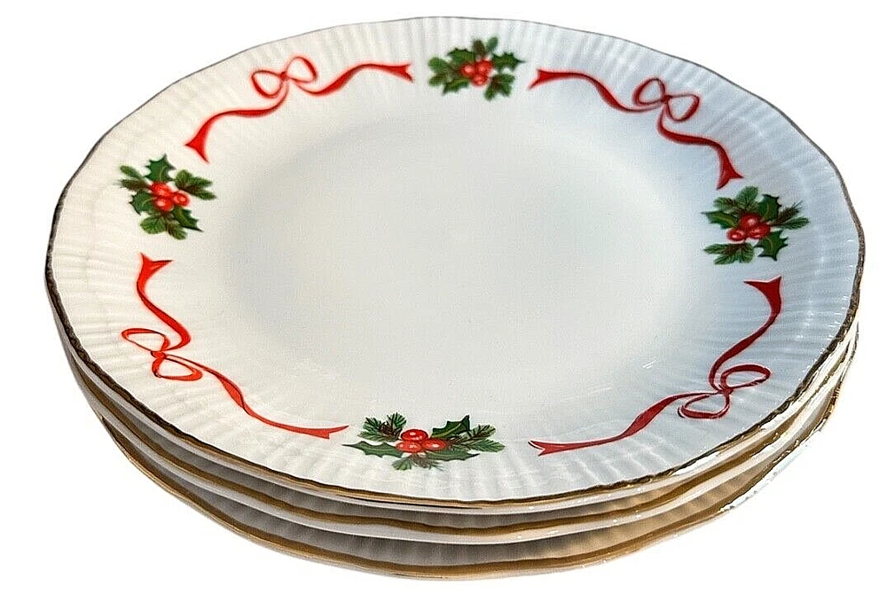 WALBRZYCH HOLIDAY RIBBONS BASKET OF CHEER SET OF 3 SALAD PLATES CHRISTMAS A FINE SET OF 3 SALAD PLATES IN THE BASKET OF CHEER - HOLIDAY RIBBONS PATTERN BY WALBRZYCH OF POLAND. ESTATE FRESH, NICE USED CONDITION. PLATES MEASURE 7 1/2" IN DIAMETER . MARKED AS SHOWN. PLEASE SEE ALL IMAGES AS THEY ARE AN INTEGRAL PART OF THE DESCRIPTION AND ASK ALL QUESTIONS PRIOR TO BIDDING. ALL ITEMS ARE PRE-OWNED AND AS SUCH MAY SHOW SOME SIGNS OF PREVIOUS USE SUCH AS MINOR MARKS AND BLEMISHES. PLEASE CONTACT US IF YOU WISH A MORE DETAILED DESCRIPTION OF A PARTICULAR ITEM.
