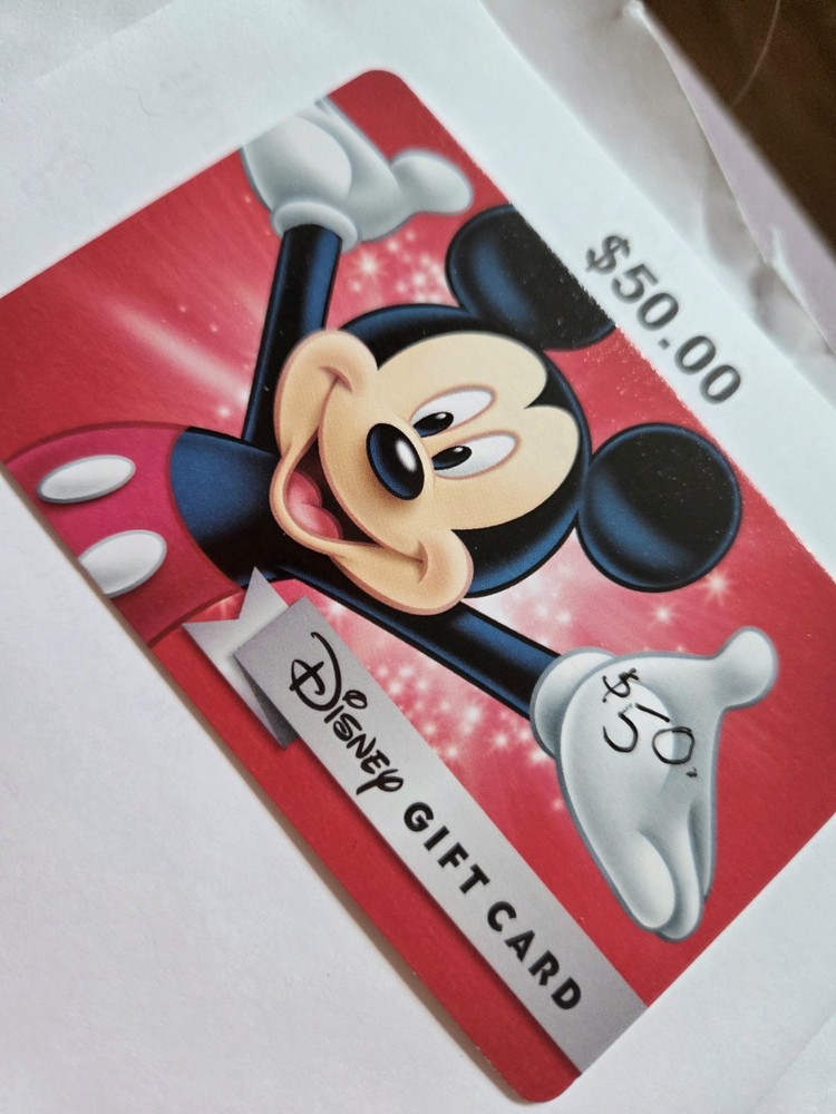 FANTASTIC GIFT !!! BRAND NEW $ 50.00. VALUE DISNEY GIFT CARD. GREAT FOR A HOLIDAY VACATION!!! WILL ALSO MAKE AN AWESOME GIFT FOR VALENTINES, BIRTHDAY, ANNIVERSARY OR ANY SPECIAL OCCASION !!! PHYSICAL CARD MUST BE SHIPPED CHOICE OF SHIPPING METHOD