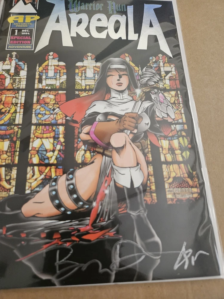 Tradition:US ComicsGenre:Superheroes, Fantasy, Bad Girl, Action, Adventure, Good Girl, ReligiousLanguage:EnglishIssue Number:1Era:Modern Age (1992-Now)Series Title:Warrior Nun ArealaArtist/Writer:Ben DunnType:Comic BookFormat:Single IssueUniverse:Warrior Nun ArealaSigned:YesCountry/Region of Manufacture:United StatesSigned By:Ben DunnPublisher:Antarctic PressVariant Type:Retailer Exclusive VariantFeatures:Special Edition, Boarded, Collector's Edition, Key Issue, Limited Edition, Variant CoverCharacter:Warrior Nun ArealaGrade:9.4 Near MintUnit of Sale:Single Unit