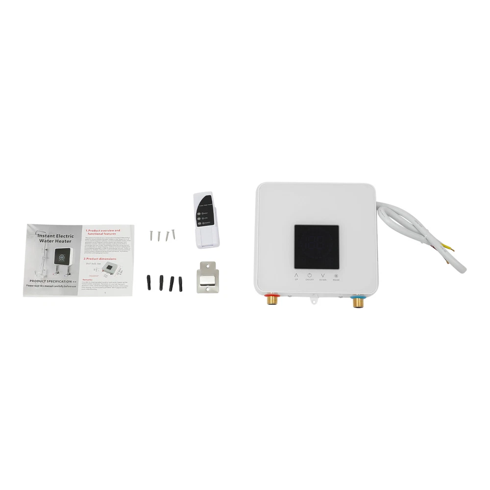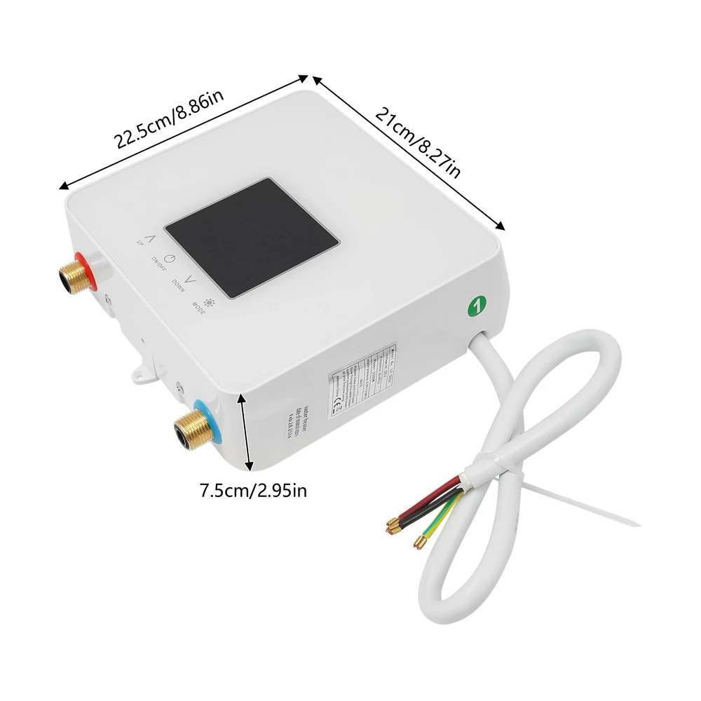 WATER HEATER, INSTANT ELECTRIC WATER HEATER, WATER HEATER WITH LED DISPLAY Welcome to my store: Description Do you long for quick and easy access to hot water on cold winter days? Our electric water heater is ready to heat up instantly. With 7500W of power and cast aluminum heating elements, the water heats up instantly to the right temperature (86-131°F), so you can enjoy hot water immediately, even on cold winter days. The touch screen and equipped remote control allow you to operate it easily, even for the elderly. Hurry up and bring this applicable product home! Key Features Selected Materials : It is made of high-quality ABS and cast aluminum heating components, which are sturdy, impact- resistant , heat- resistant , and waterproof , so it can withstand wet environments such as kitchens or bathrooms. High Efficiency: 7500W of powerful power and high-quality cast aluminum heating elements allow the water to heat up in seconds as it passes through, without having to wait too long. Two Modes : Two modes ( thermostat and gear mode) provide added convenience for your use. In thermostat mode, you can set the temperature between 86-131°F for a constant temperature. When in gear mode, the temperature is controlled by the amount of water flow (high water flow, low temperature; low water flow, high temperature). Additionally, you can switch between the two modes by long-pressing the on button for 6 seconds. Energy-saving : When the water flow is turned on, it will be heated automatically, and when the water flow is turned off, the power will be turned off automatically, and it will be on standby when it is not in use to save your electricity. Memory Function: It remembers the settings from the last time it was used, avoiding repeated settings and saving time and effort. Safety Guard: Anti-leakage protection, anti-dry burn protection, overheating protection, and IPX4 waterproof level provide this product with high safety, allowing you to use this product confidently. In addition, when in thermostat mode, the CPU board of the water heater automatically detects the water temperature to avoid skin damage caused by large temperature differences. Easy Operation: Equipped with a touch control panel and LED display, it can be easily controlled via an easy-to-use touch screen or remote control (Within 6.56ft). In addition, you can freely switch between Celsius and Fahrenheit according to your different preferences. Space-saving: It is compact (8.86*8.27*2.95in) without a large tank, making it suitable for a small space. It can be mounted on the wall, which will not take up your countertop space. Simple Installation: Complete accessories, simple structure, and detailed English manual allow you to install and start to use it in a short time. Effortless Clean : With its simple construction and smooth surface, you can simply wipe off surface dust with a damp rag. Details Copper Wire : We use a pure copper coil with low-temperature rise and high-temperature resistance , which can ensure stable output. Standard 1/2" Connector : It has a standard 1/2" connection (inflow or outflow) and can connect directly to regular household hose fittings. Filter : The filter in the water inlet can effectively filter impurities in the water, providing you with healthier and purer water. Mounting Latch : It is easy for you to punch holes and position them for installation Rounded Edges: The rounded edges not only ensure safe use but also enhance the aesthetics of the product. Application It is suitable for kitchens, bathrooms, restaurants, schools, hair salons, hotels, sinks, etc. Specification Model: LF-002C Material: ABS, Cast Aluminium Process: Die-casting Color: White Style: Modern Shape: Rectangular Mount Type: Wall Mounted Assembly Required: Yes Power Source: Corded Electric Control Mode: Touch Control, Remote Control Remote Control Battery: 2 * AAA Batteries(Not Included) Heating Time: Instant Heat Display Screen Type: LED Voltage: AC 220V Frequency: 50-60HZ Power: 7500W Rated Pressure: 0.04-1.2MPa Waterproof Level: IPX4 Adjustable Temperature: 30-55℃/86-131°F Starting Water Flow Rate: 1L/0.26Gal Interface Specification: 1/2" Remote Control Distance: 2m/6.56ft Power Cord Length: 0.7m/2.3ft Wire Requirement: 4mm² Trip Switch: ≥40A Product Size: 22.5*21*7.5cm/8.86*8.27*2.95in Gross Weight: 2.5kg/5.51lbs Package Size: 31*28*11cm/12.2*11.02*4.33in Package Included 1*Instant Electric Water Heater 1*Remote Control 1*English Manual All Accessories for Assembly Notes Please note that the machine must be installed vertically and it is strictly prohibited to install it horizontally. Please note that the two AAA batteries are not included in the remote control, so you need to buy them yourself. Please note that this product does not include a trip switch. Before purchasing, confirm whether the circuit is made of copper wire is wider than ≥ 4mm² and whether the switch is ≥ 40A (ampere). Please read the manual carefully before use, and pay particular attention to the safety instructions included. The house circuit and circuit breaker capacity must be well-matched as per the rated power of the water heater. Installation must be done by professionals. It is forbidden to connect the water heater to the power supply once the water inside of water heater is frozen. If the power cord of the water heater is broken, it must be replaced by professionals. Please allow the slight color difference caused by the shooting light and 1-3cm error due to manual measurement, and make sure you do not mind before you order. DESCRIPTION 2: Welcome to autocomponents999 Our store has a wide range of product categories for you to choose from. Welcome to click on our store to make a purchase or consult us, and we will recommend the products you need. Payment Delivery details Terms of sales About us Contact us Payment We accept ebay payment 。 Fees such as import duties, taxes are not included in the item price or shipping costs. These charge