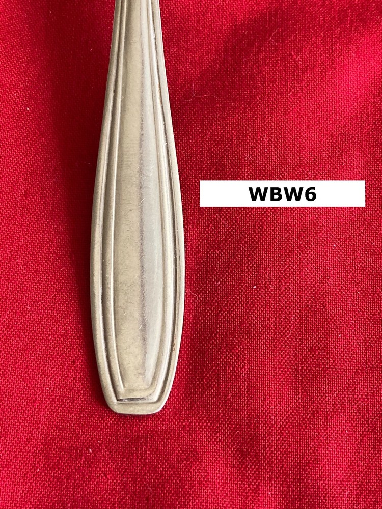 Manufacturer: WBW Flatware Pattern: WBW6 Type: Stainless Steel Piece: Soup Spoon Length: 7"